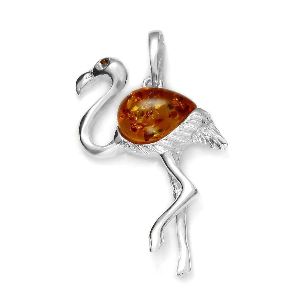 Silver Flaming pendant with amber
