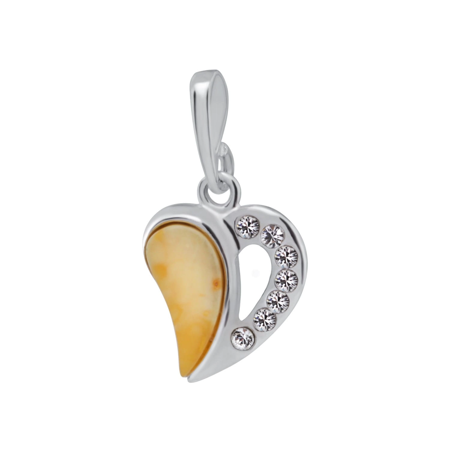 Silver Heart pendant with amber