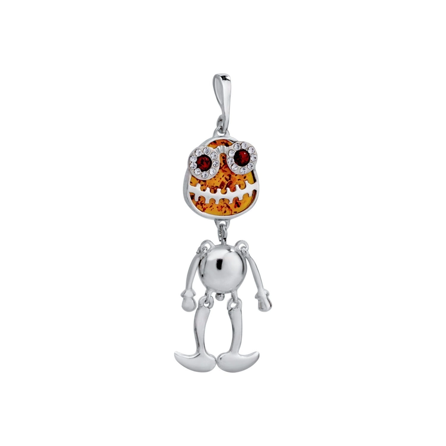 Silver Pendant Doll Voodoo with amber