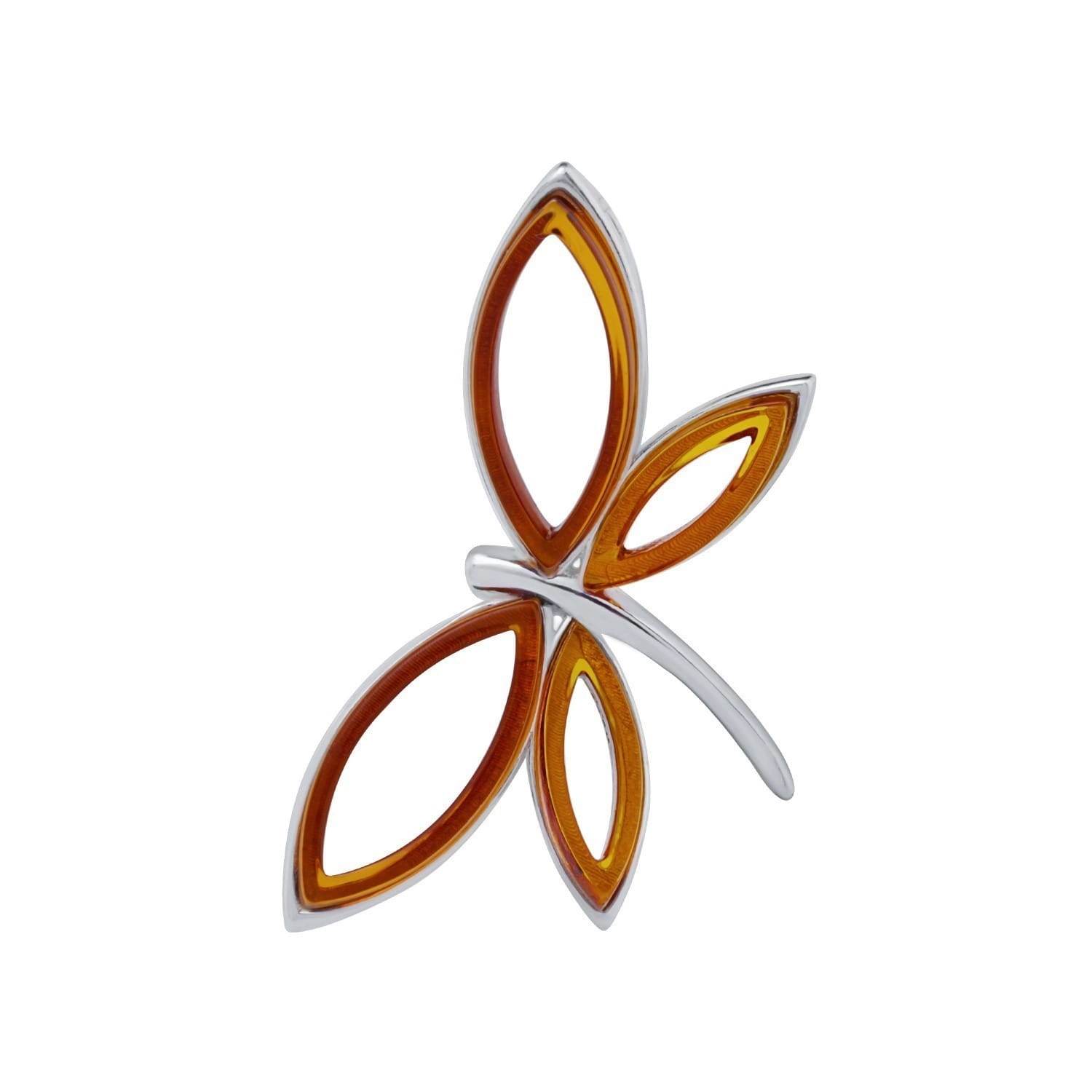 Silver butterfly pendant with amber
