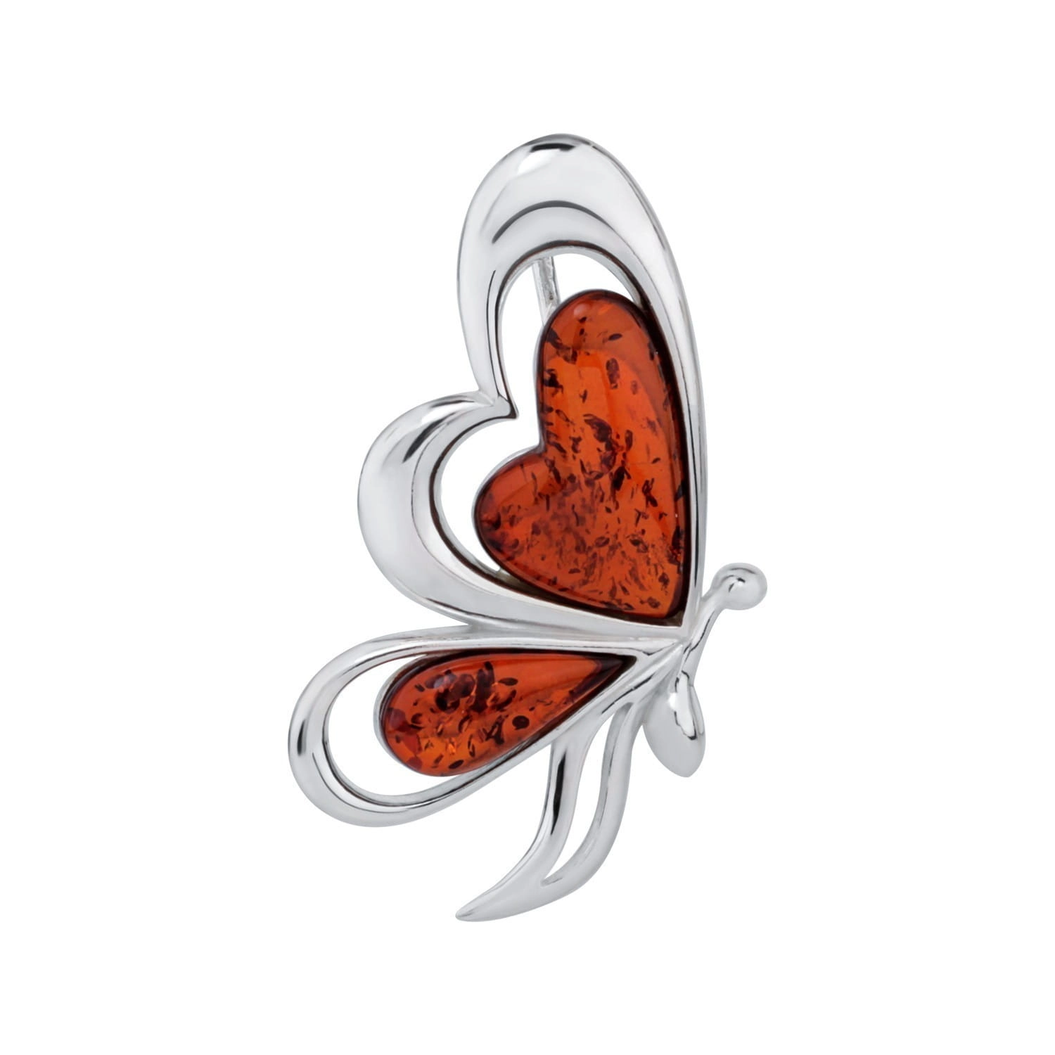 Silver butterfly pendant with amber