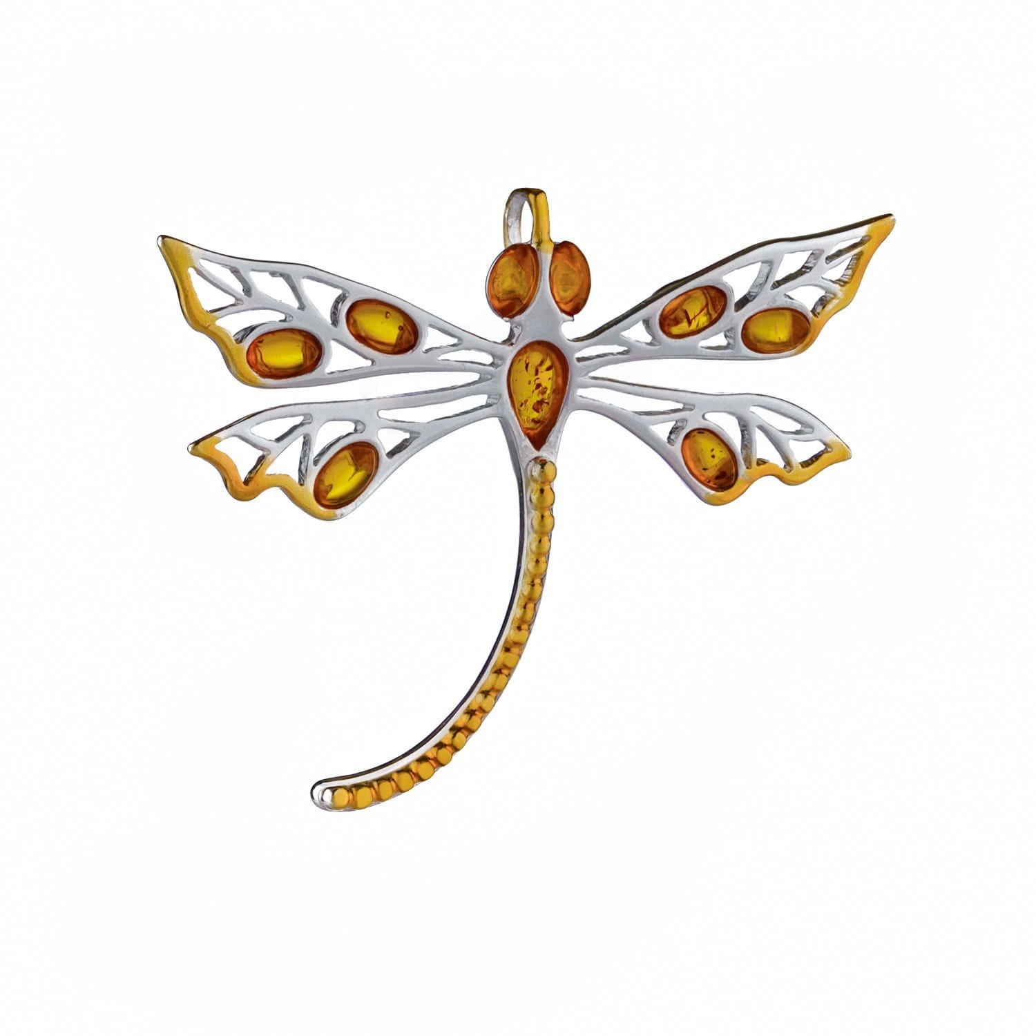 Silver dragonfly pendant with amber