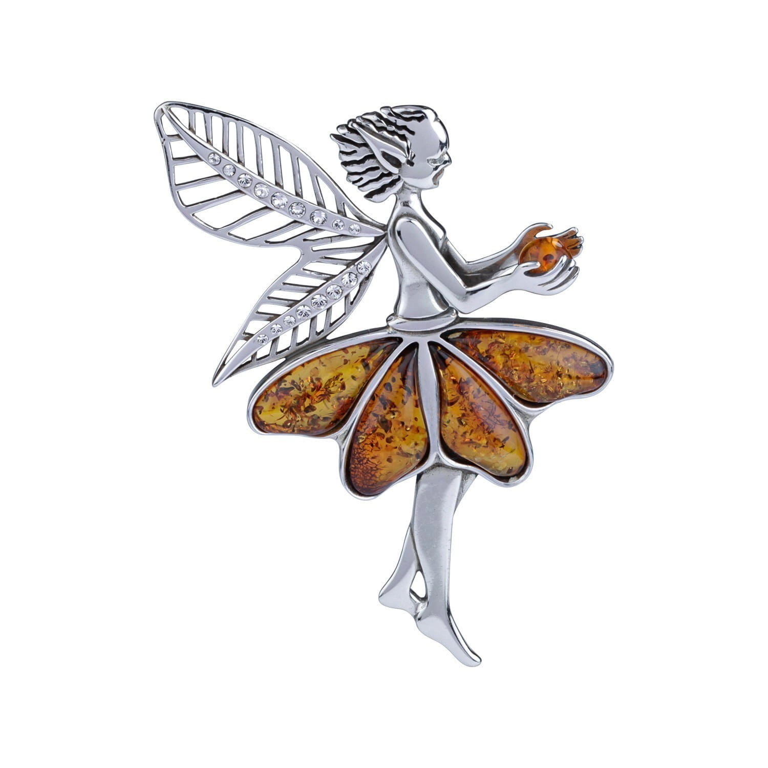 Silver elf pendant with amber