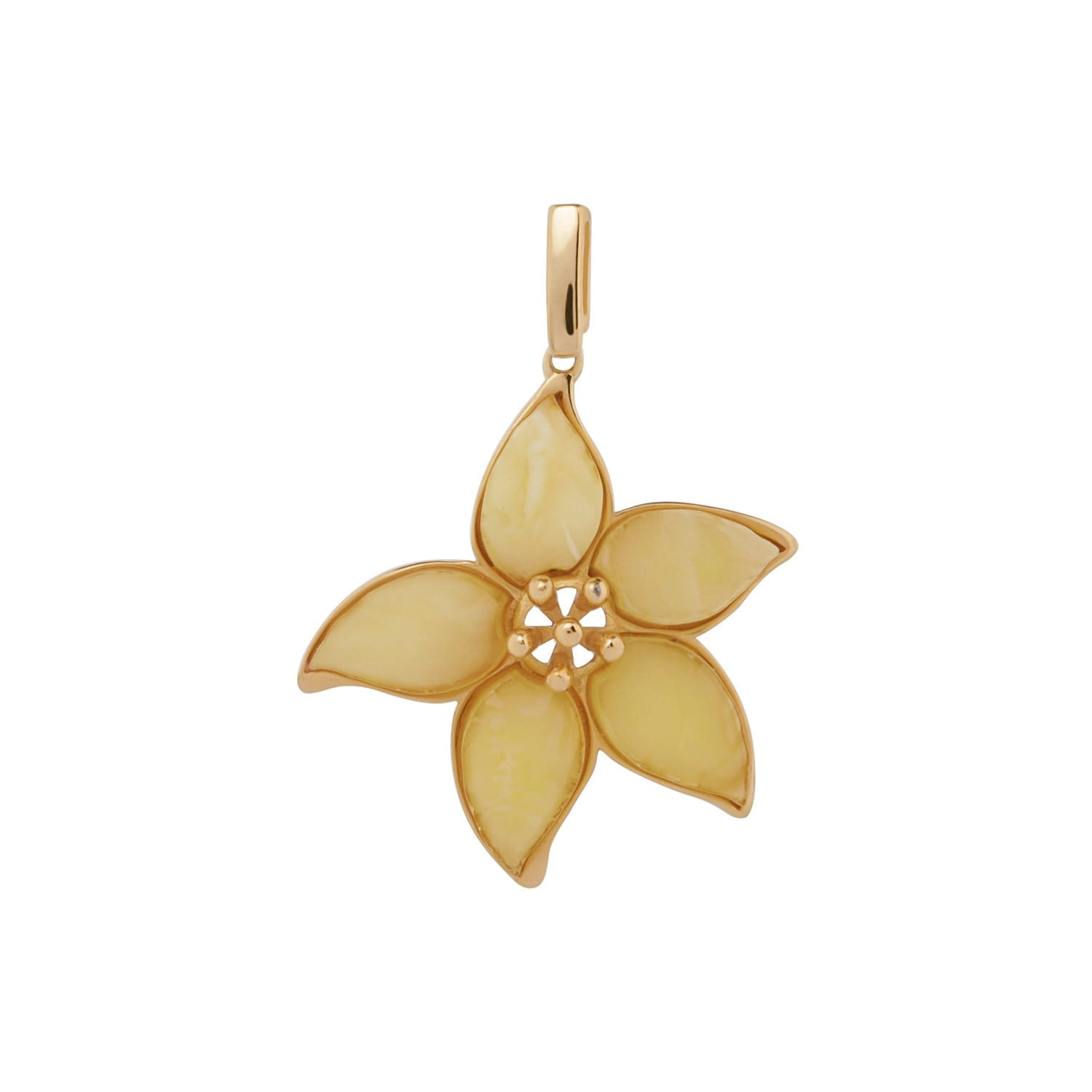 Silver flower pendant with amber