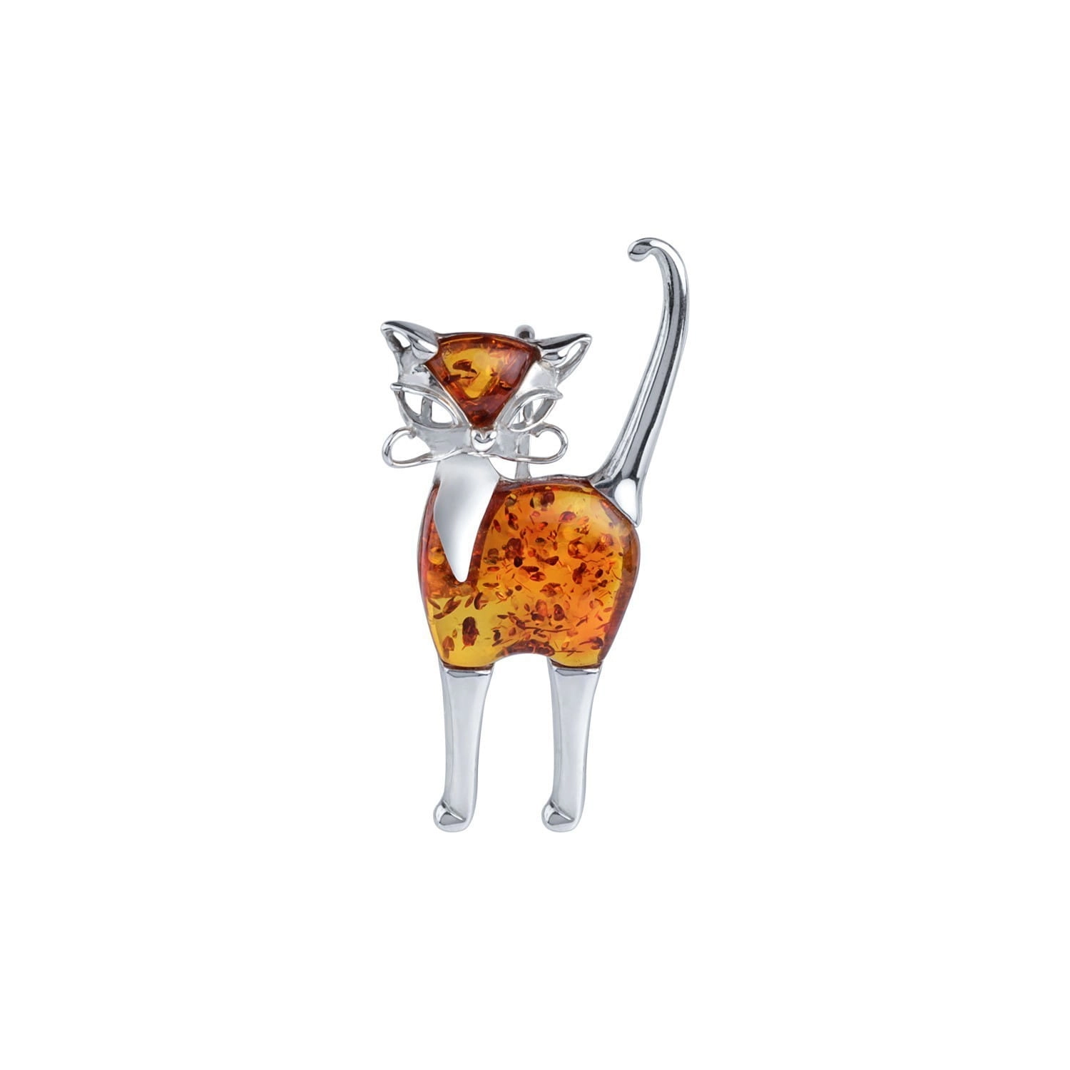 Silver kitten pendant with amber