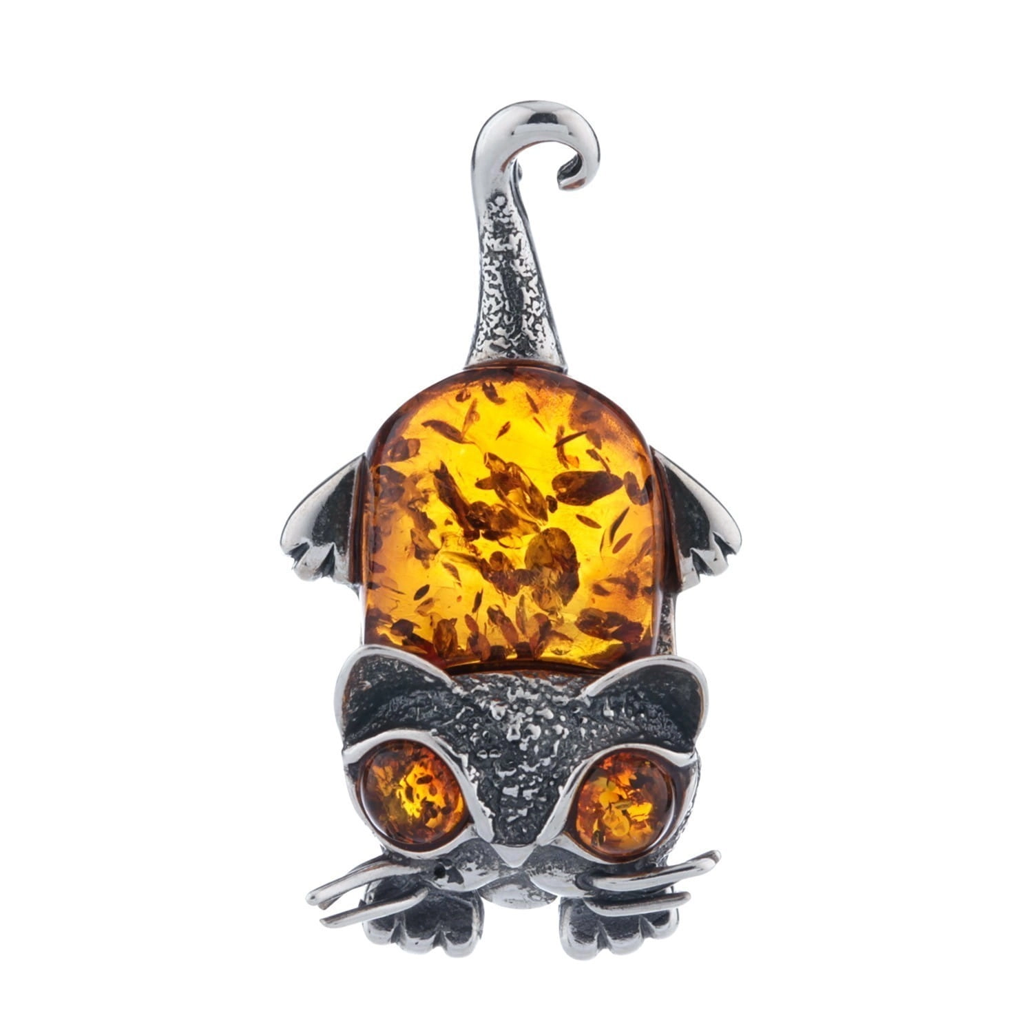 Silver kitten pendant with amber