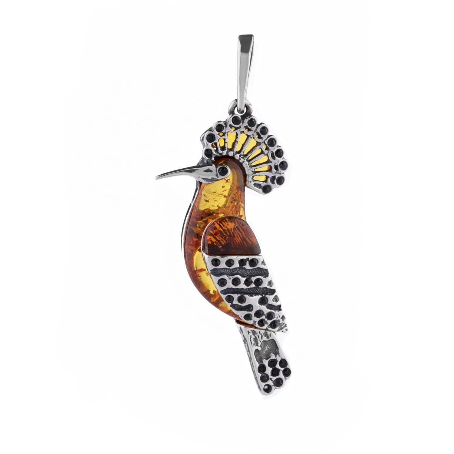 Silver pendant bird with amber