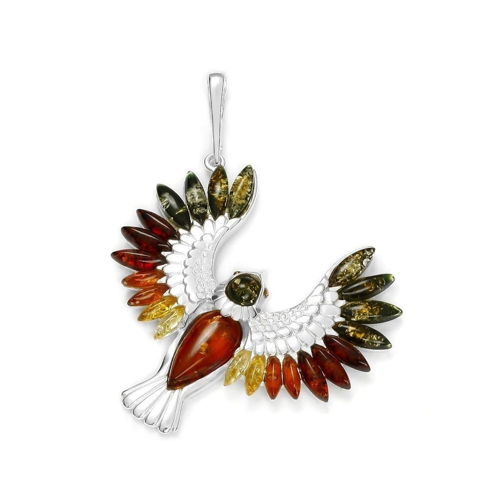 Silver pendant bird with amber