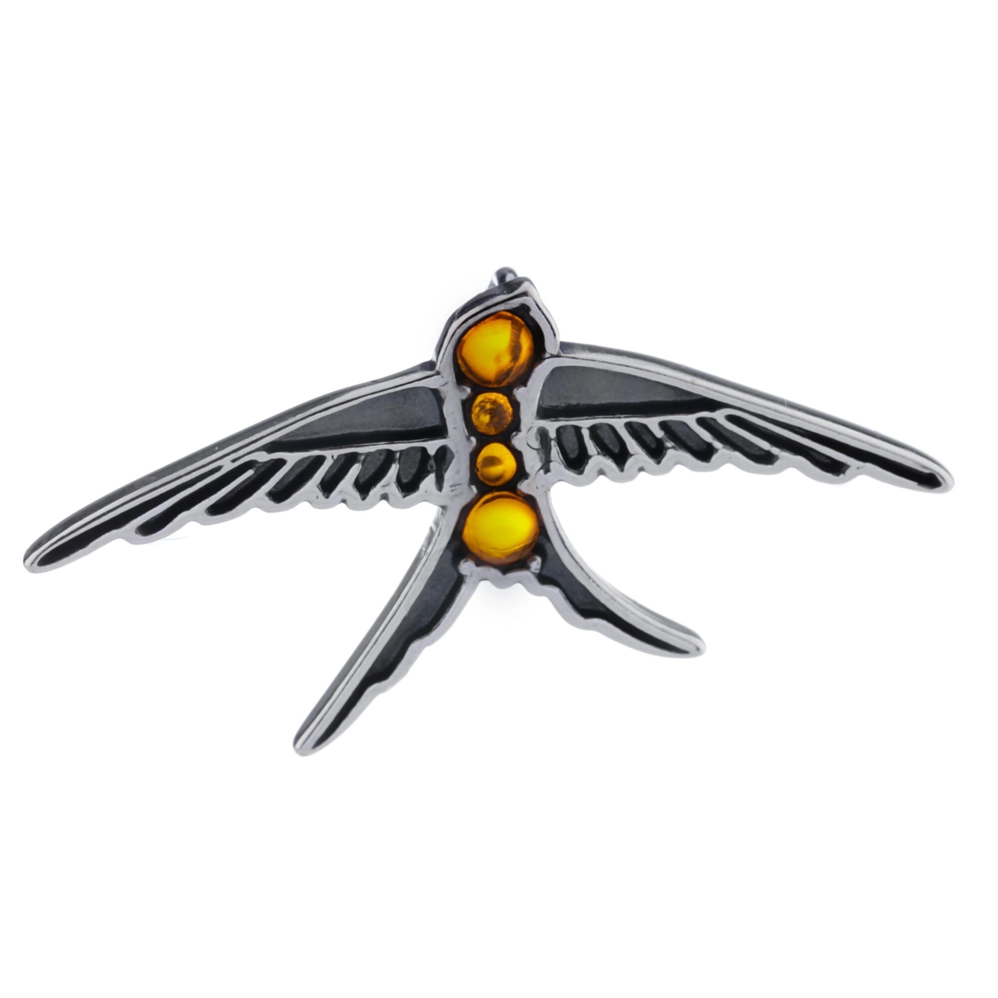Silver pendant bird with amber