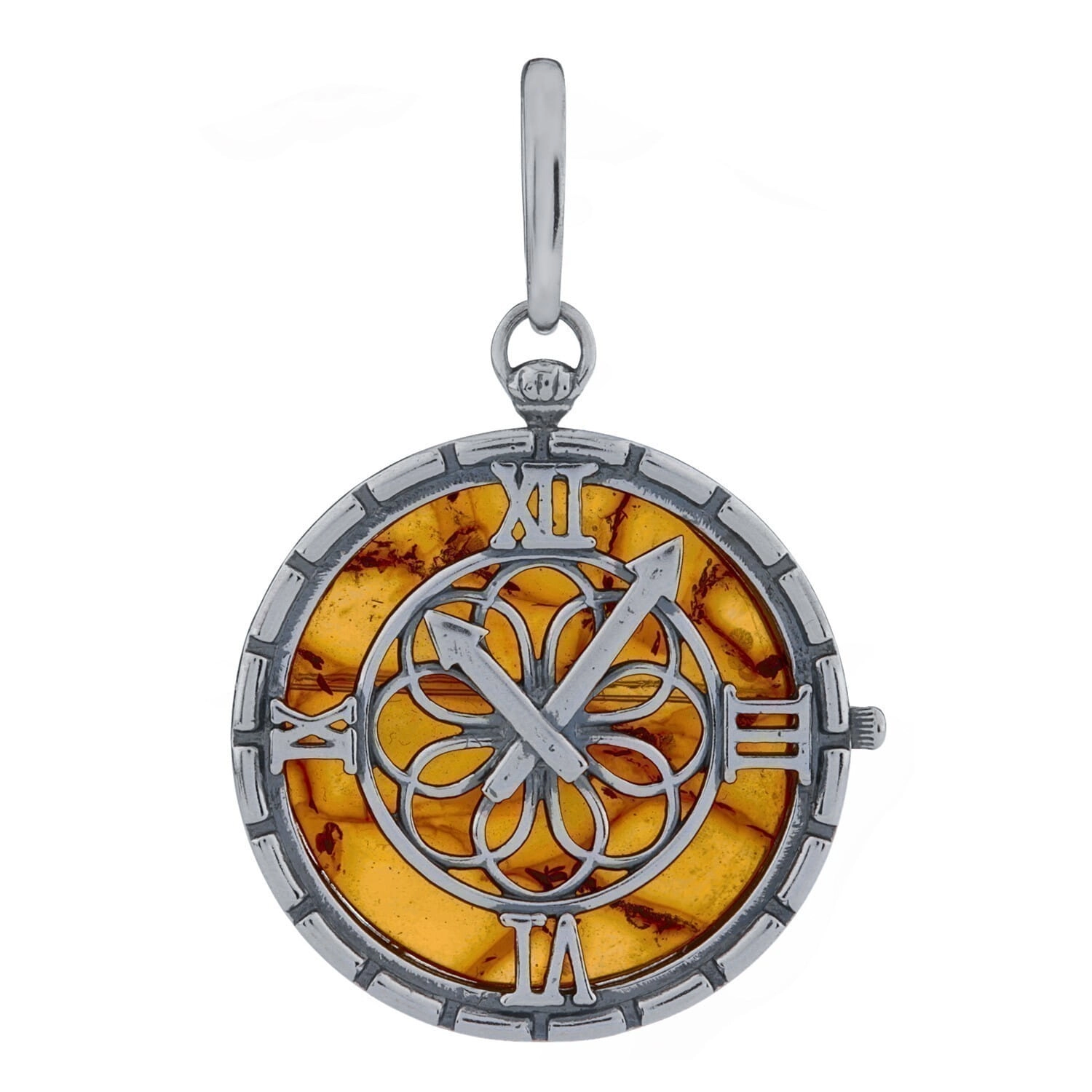 Silver pendant clock with amber