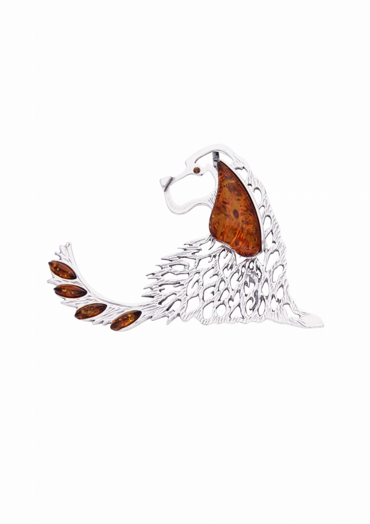 Silver pendant dog with amber
