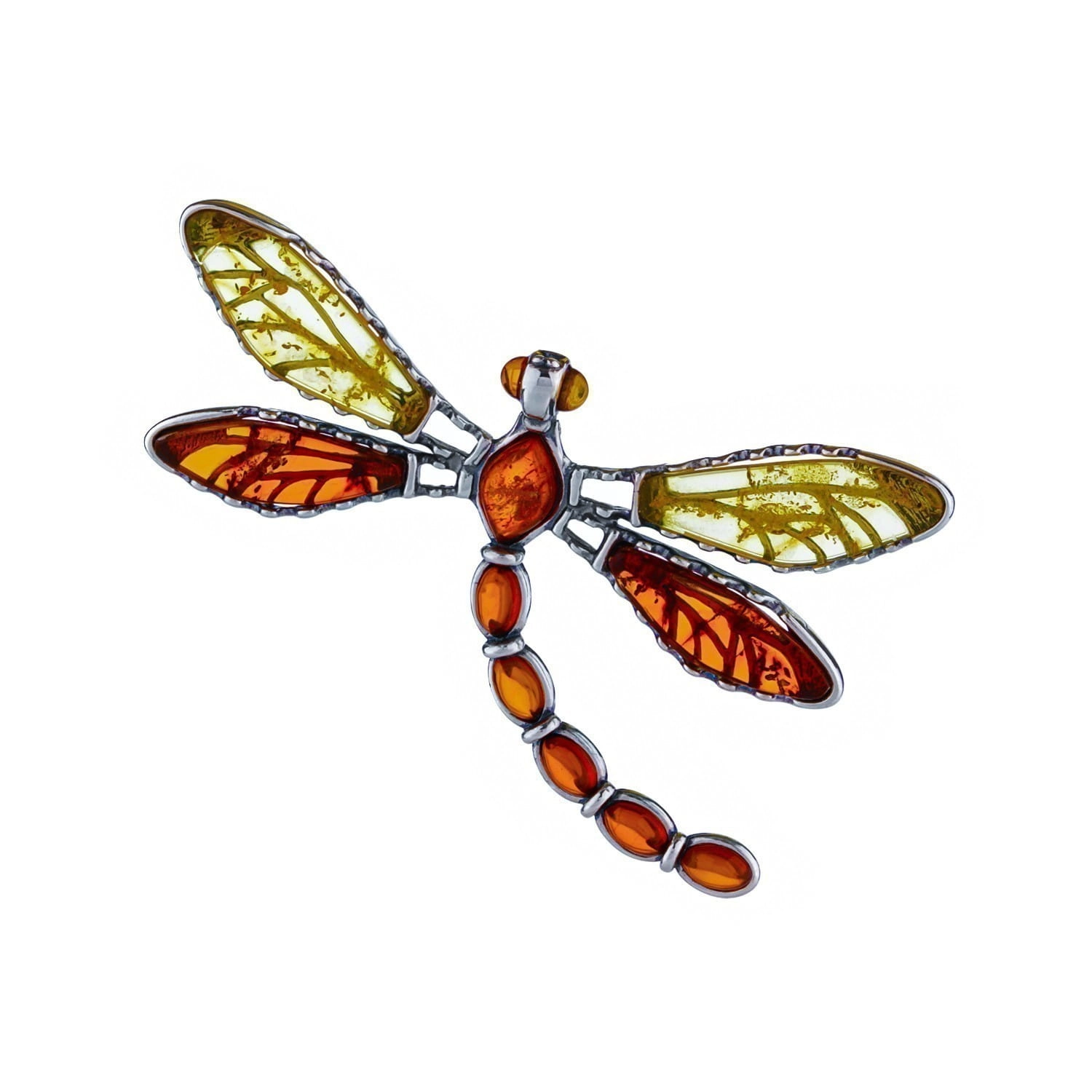 Silver pendant dragonfly with amber