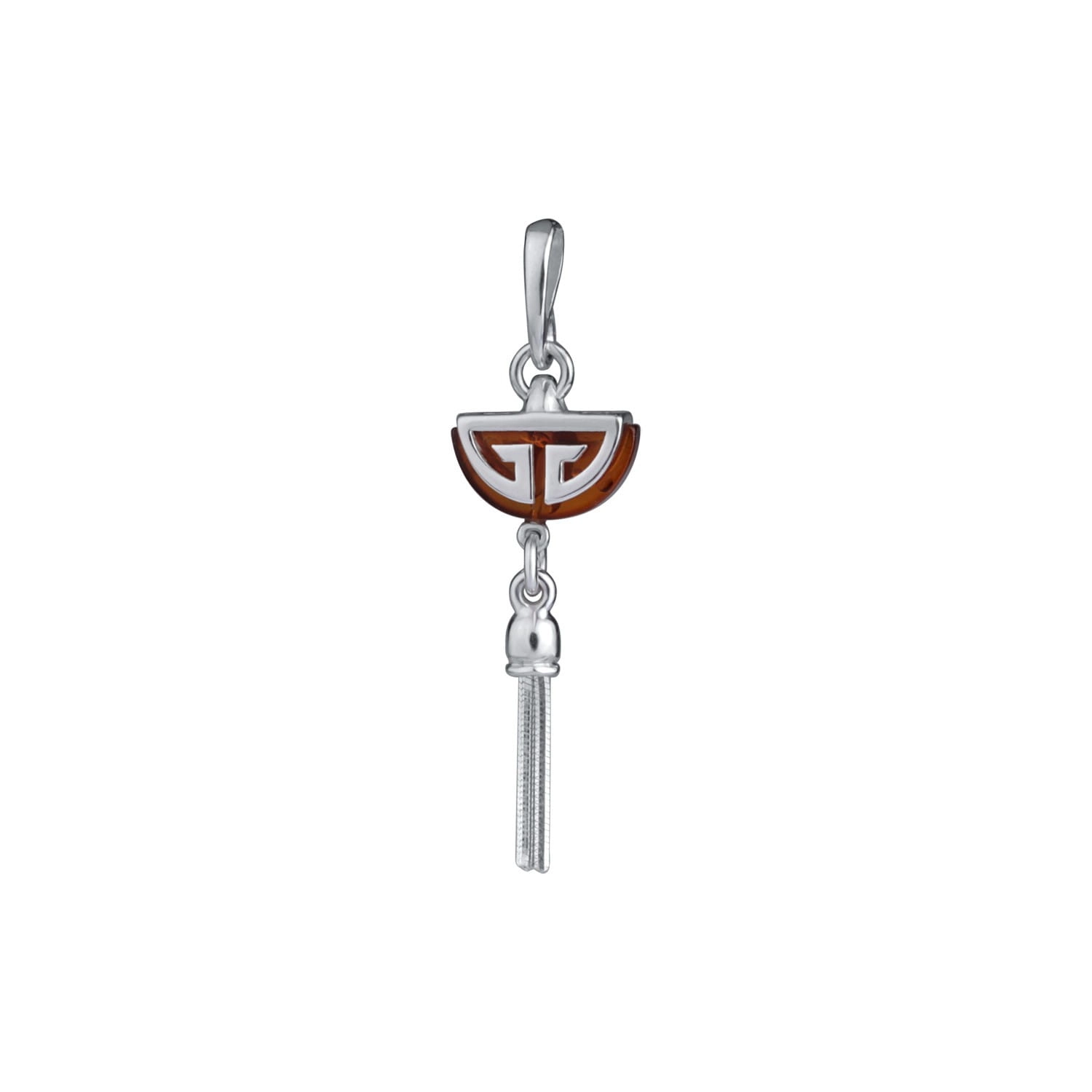Silver pendant half a moon with amber