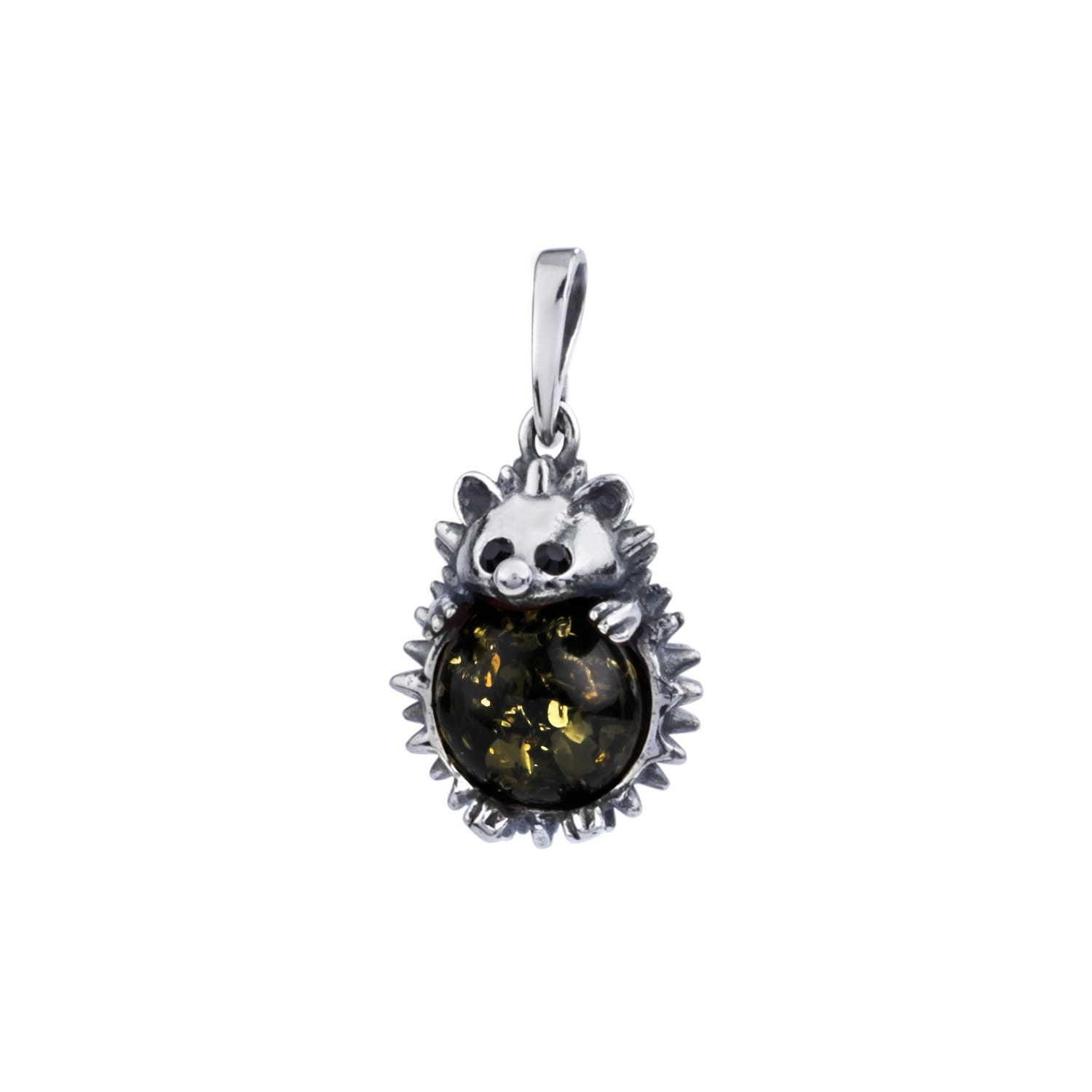 Silver pendant hedgehog with amber