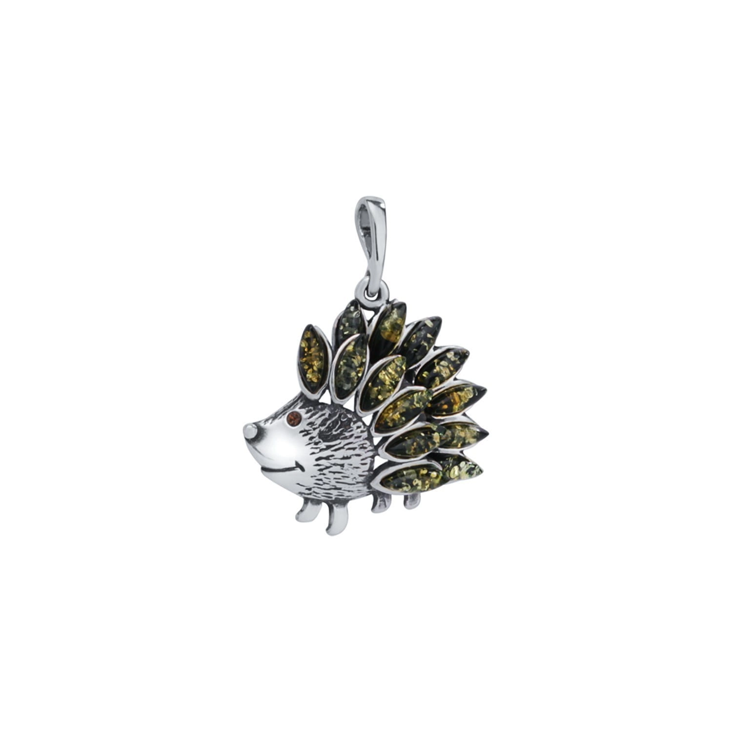 Silver pendant hedgehog with amber