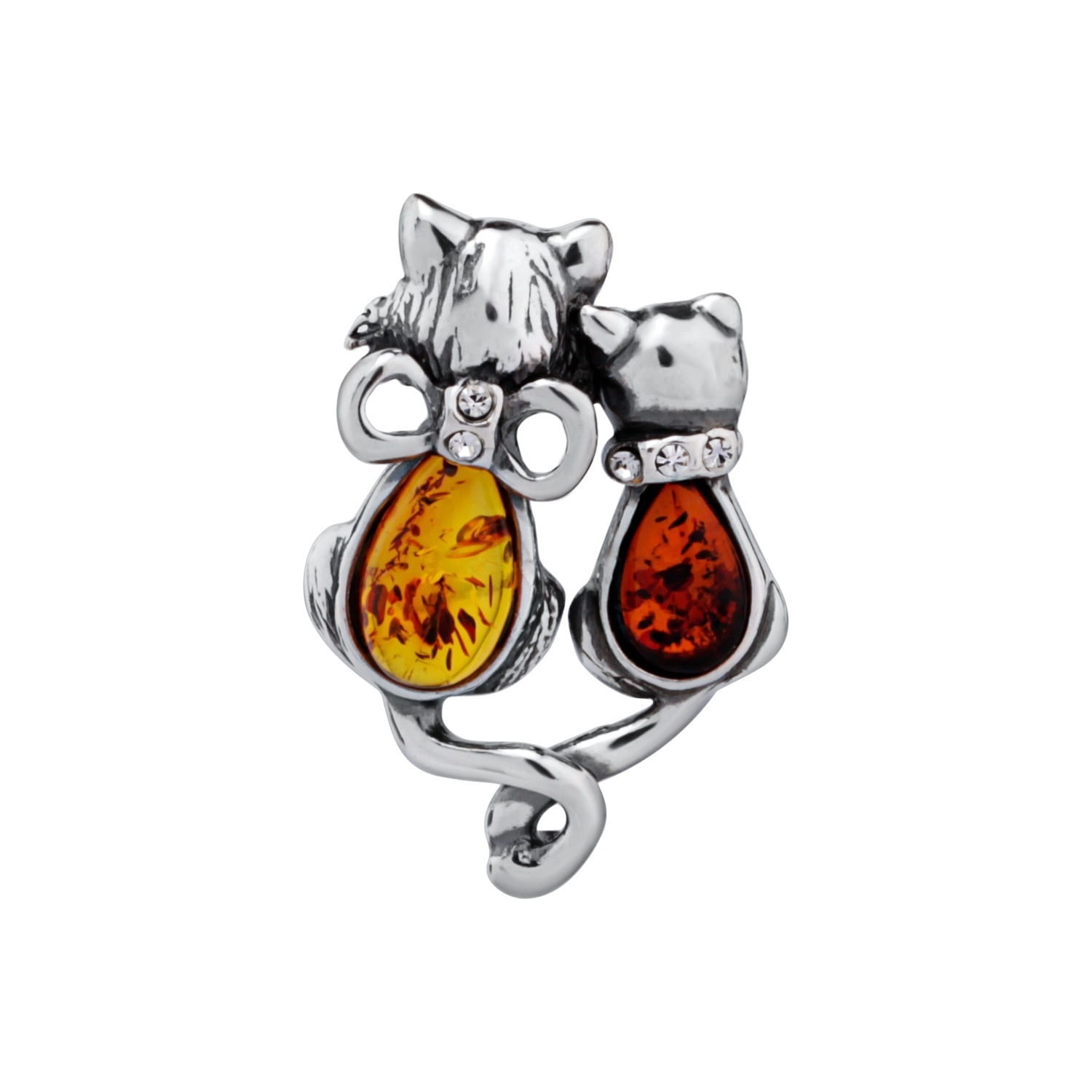 Silver pendant in love with amber kittens