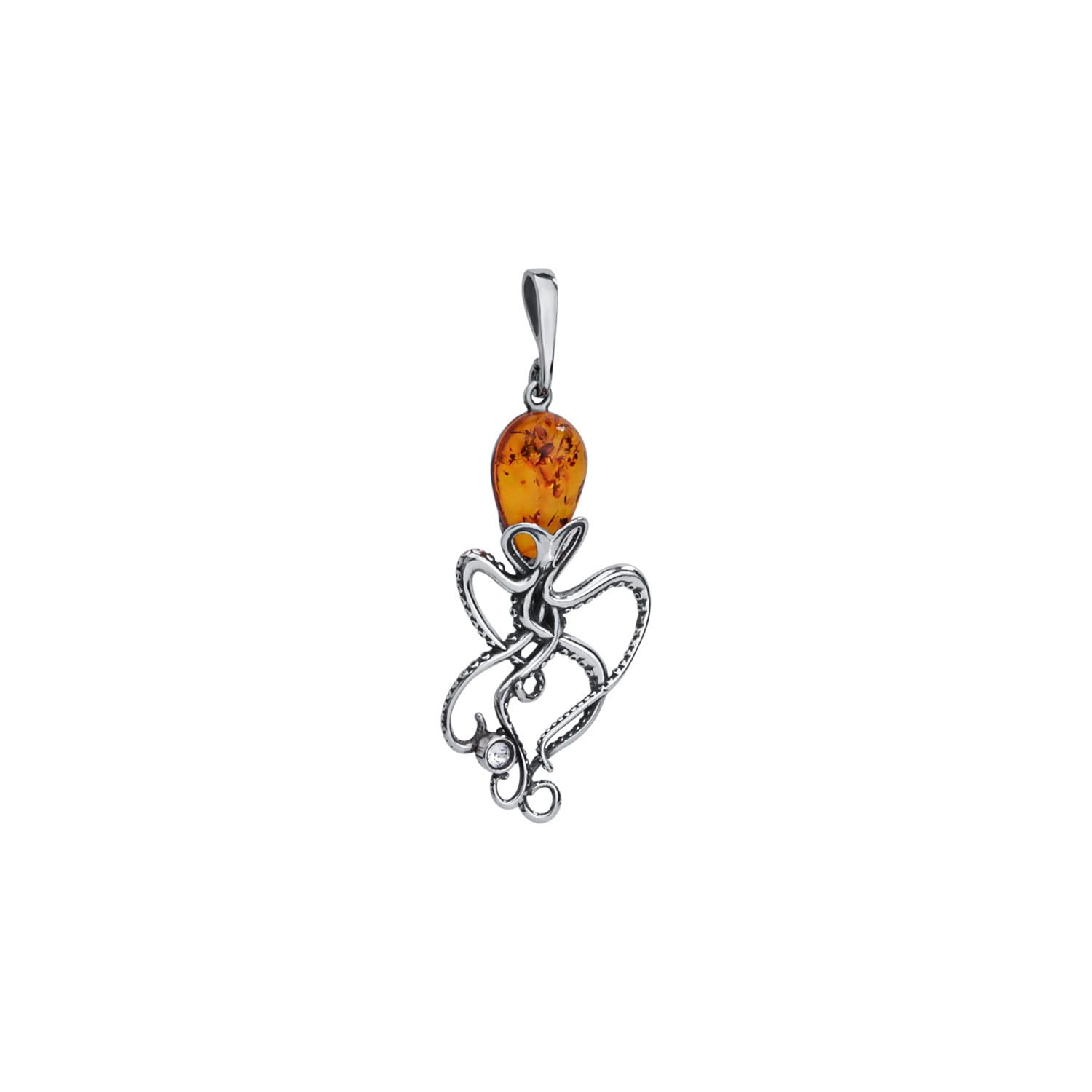 Silver pendant octopus with amber