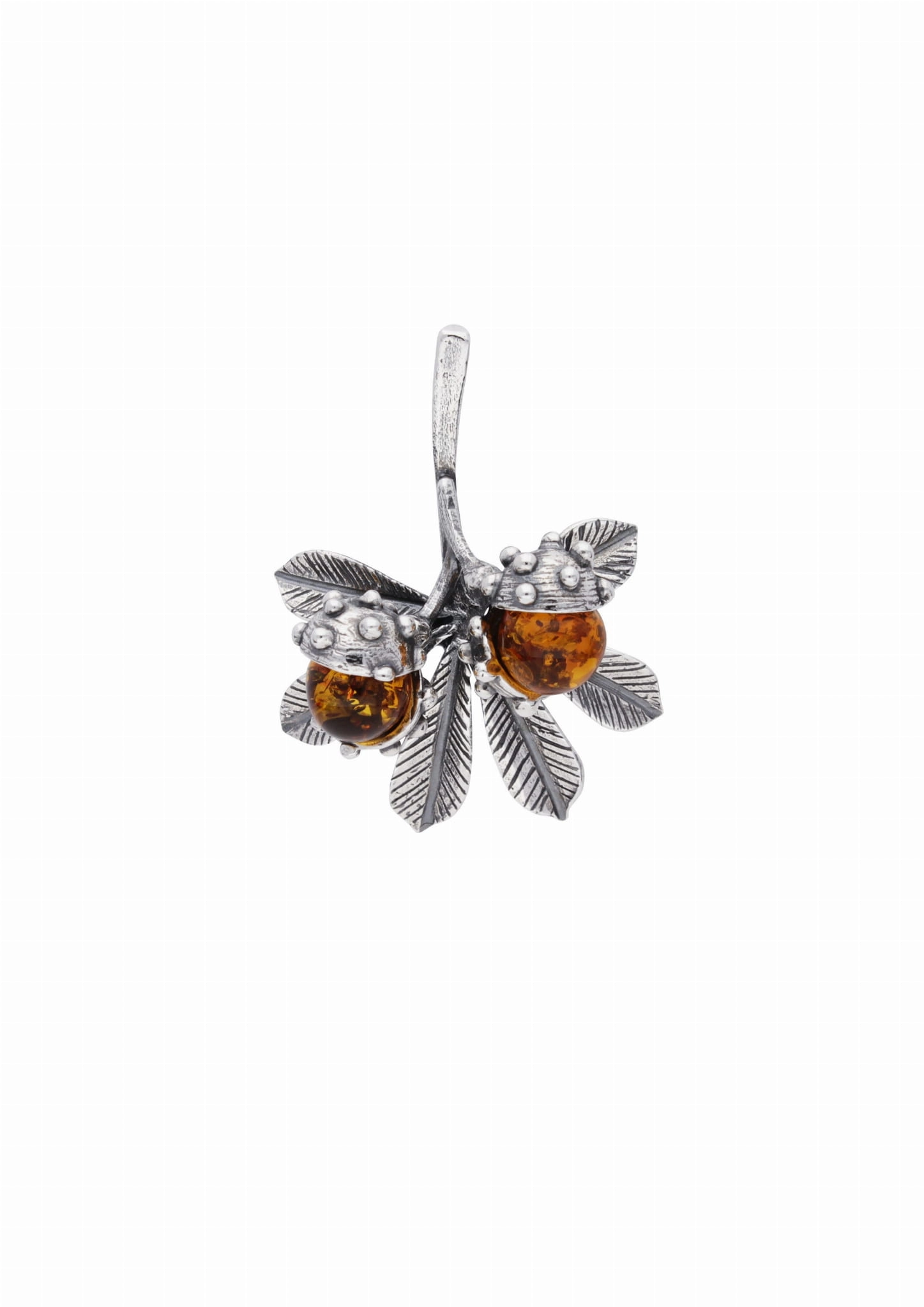 Silver pendant of mistletoe with amber