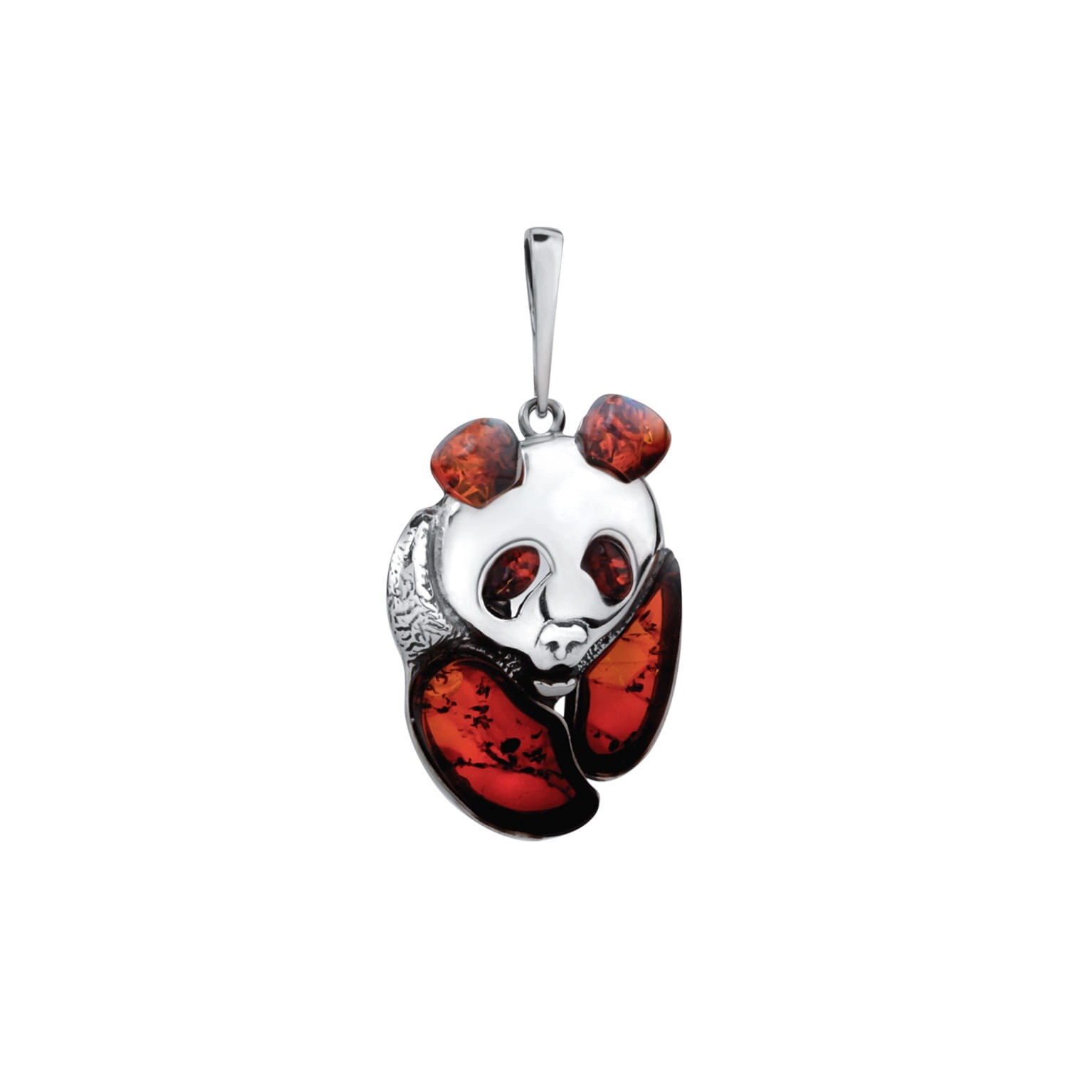Silver pendant panda with amber