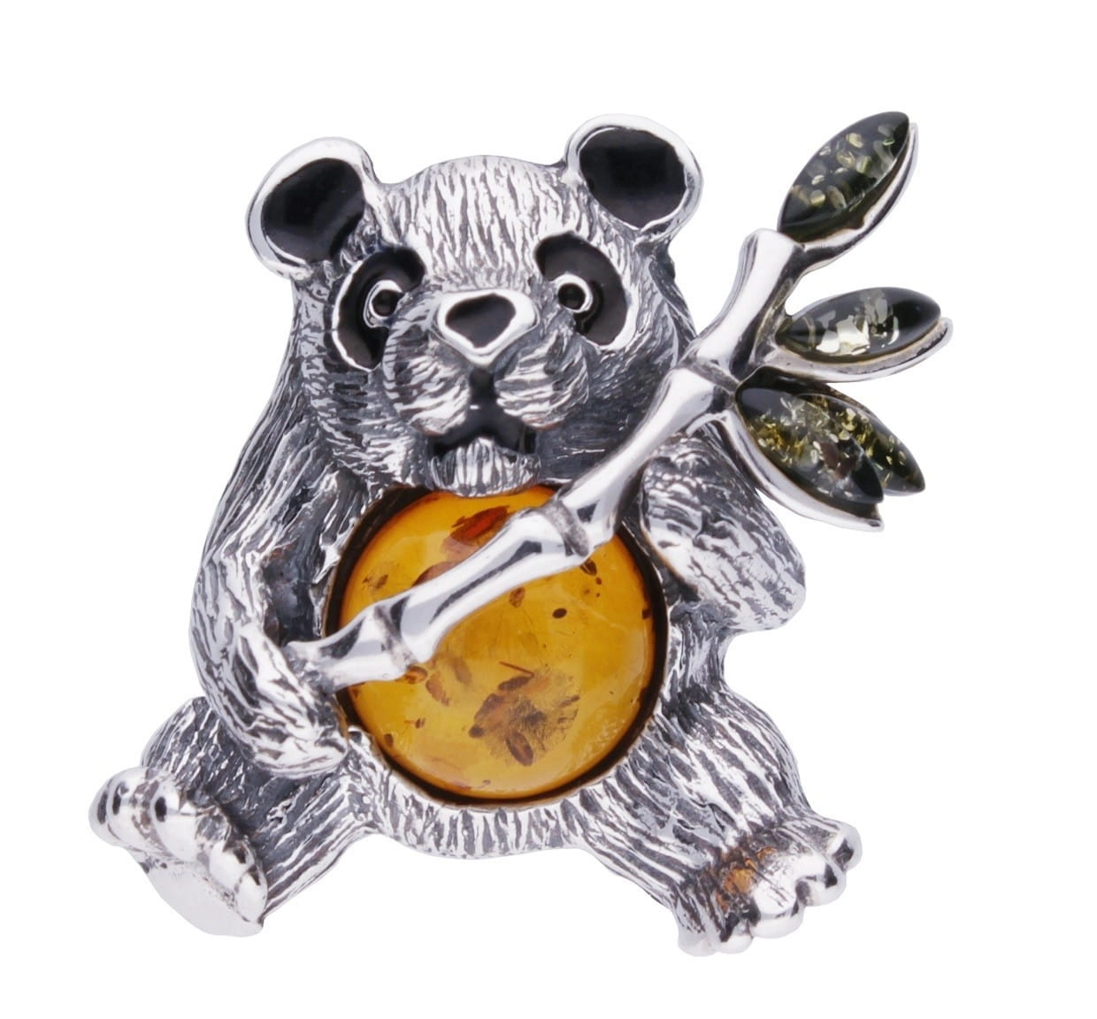 Silver pendant panda with amber