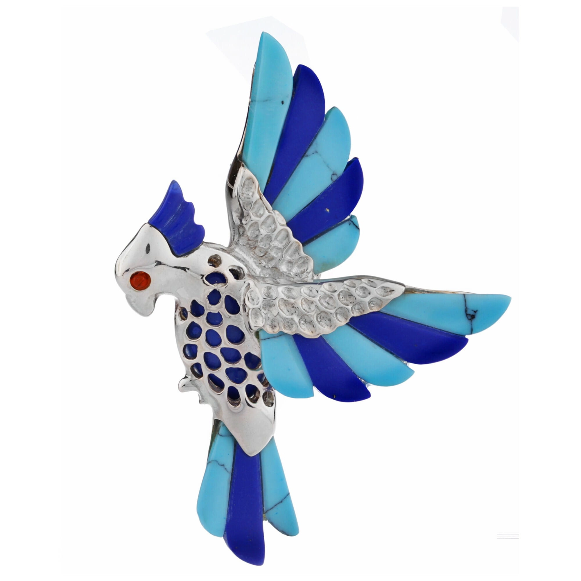 Silver pendant parrot with turquoise