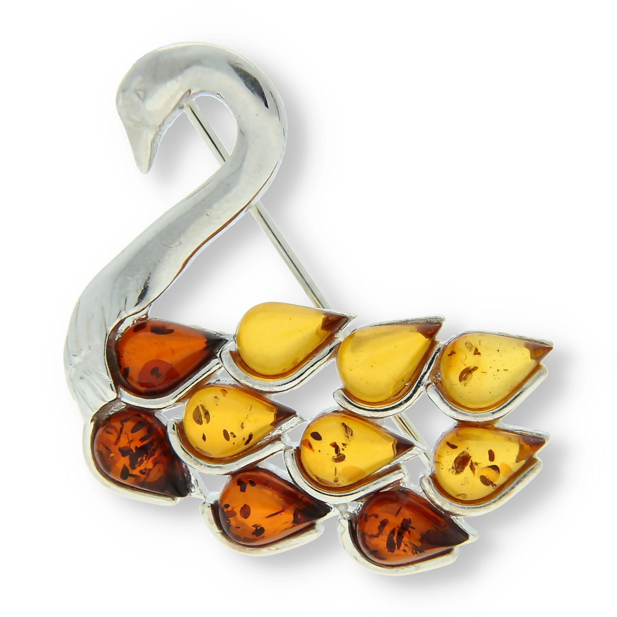 SREBRNA BROSZKA ŁABĘDŹ Z BURZTYNEM