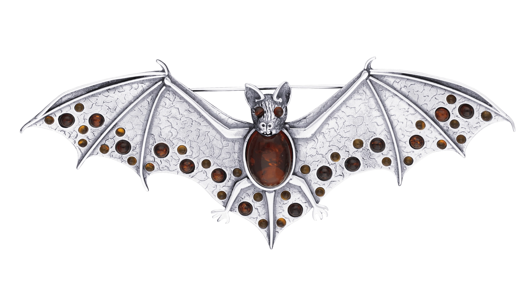 SREBRNA BROSZKA NIETOPERZ Z BURSZTYNEM
