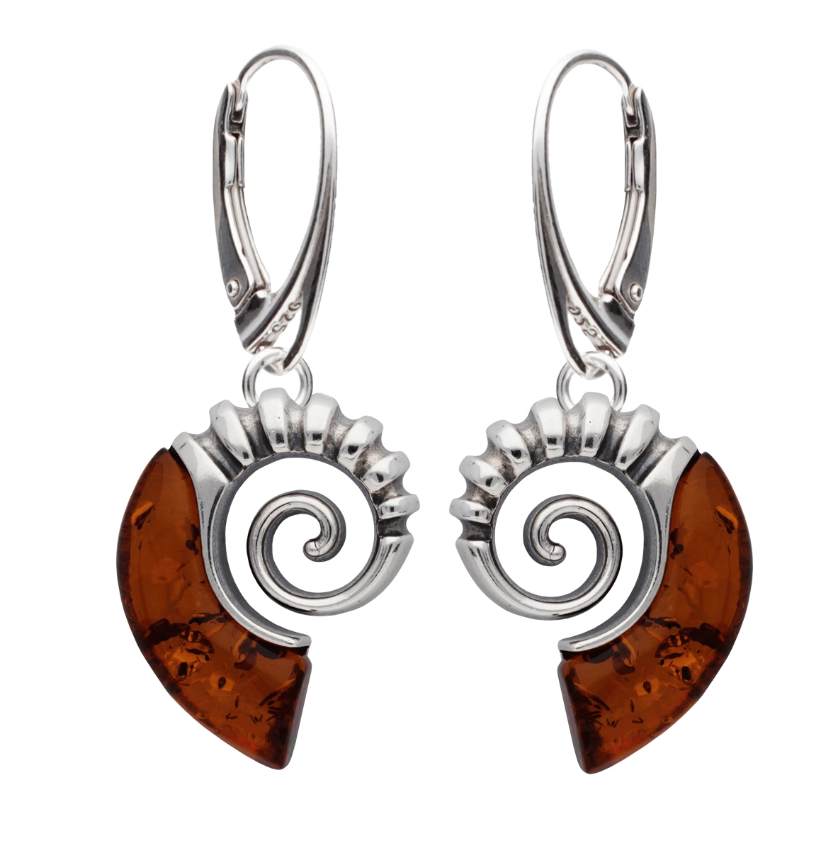 SREBRNE KOLCZYKI AMONIT Z BURSZTYNEM