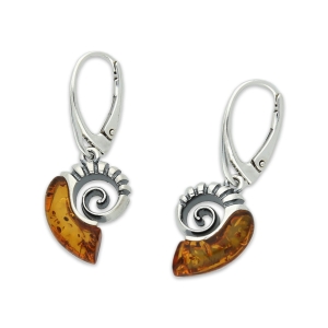SREBRNE KOLCZYKI AMONITY Z BURSZTYNEM