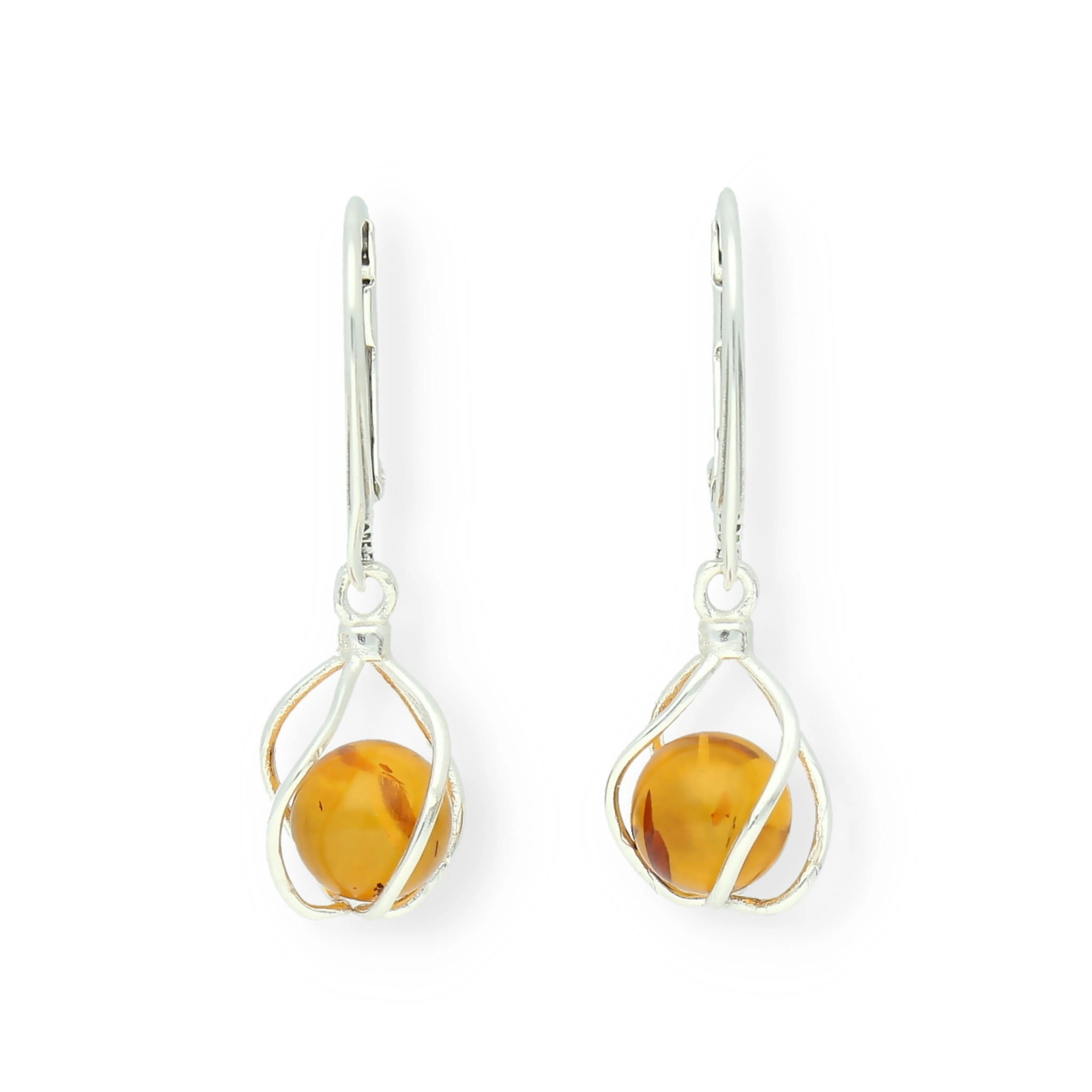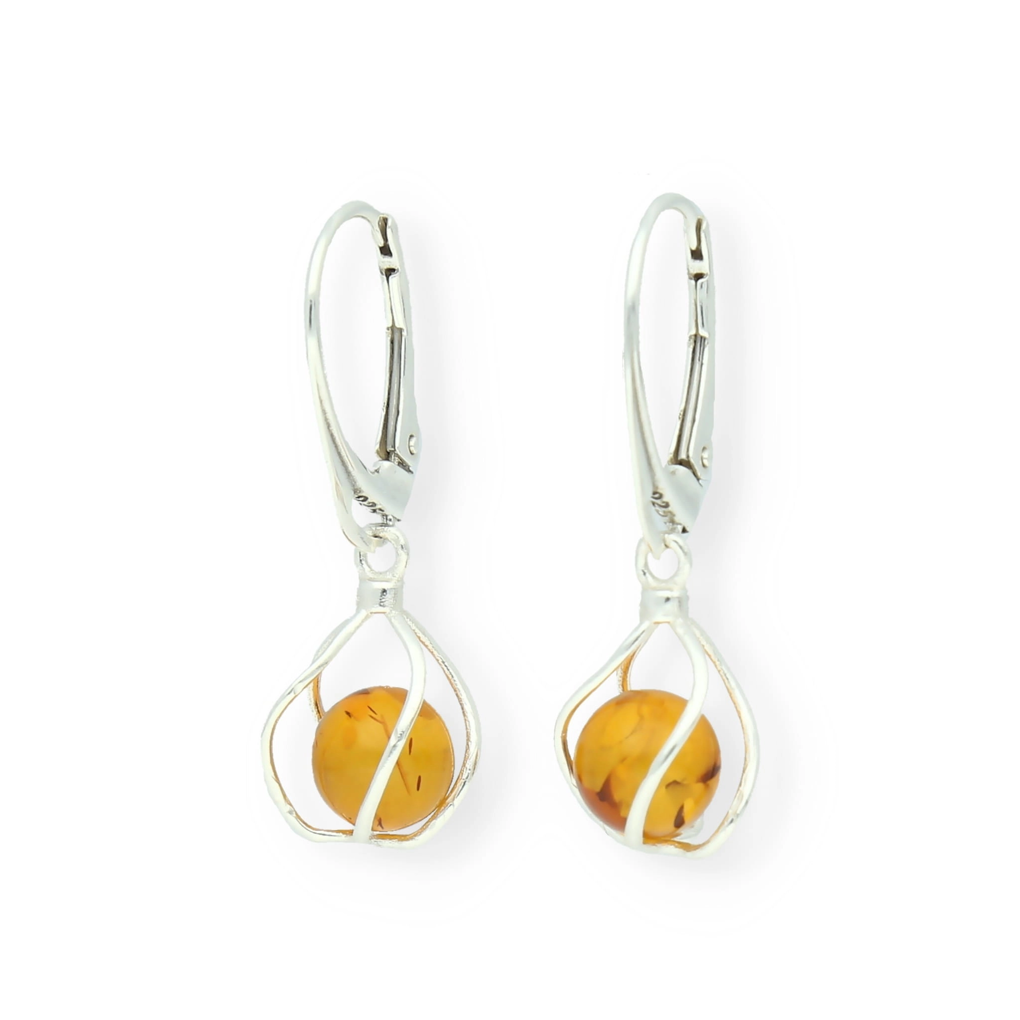 Gustowne kolczyki z bursztynem, których unikalne wzornictwo przyciąga uwagę i cieszy oczy. Złoto bałtyku przybiera wiele kolorów dzięki czemu biżuteria pasuje do każdej Pani podkreślając jej wyjątkowość.