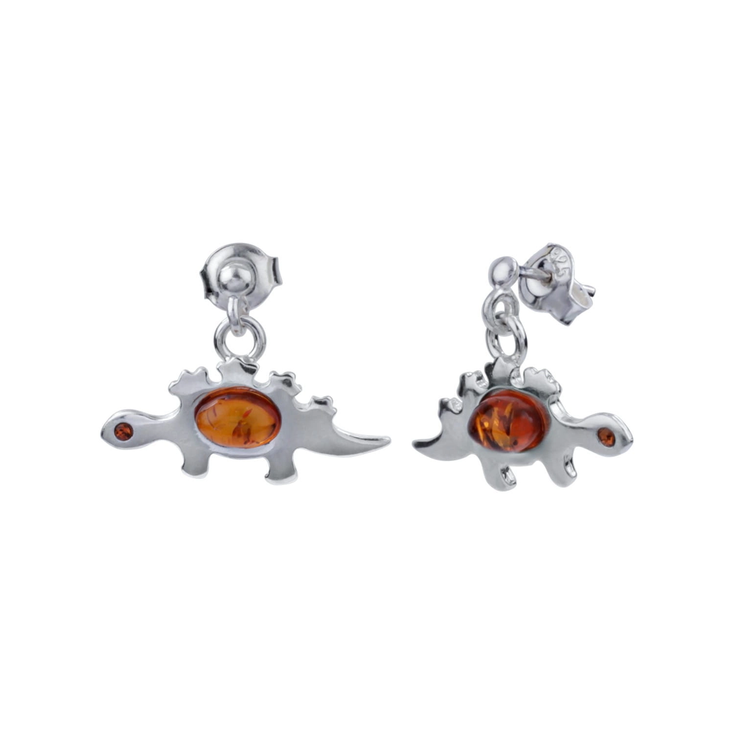 SREBRNE KOLCZYKI DINOZAURY Z BURSZTYNEM
