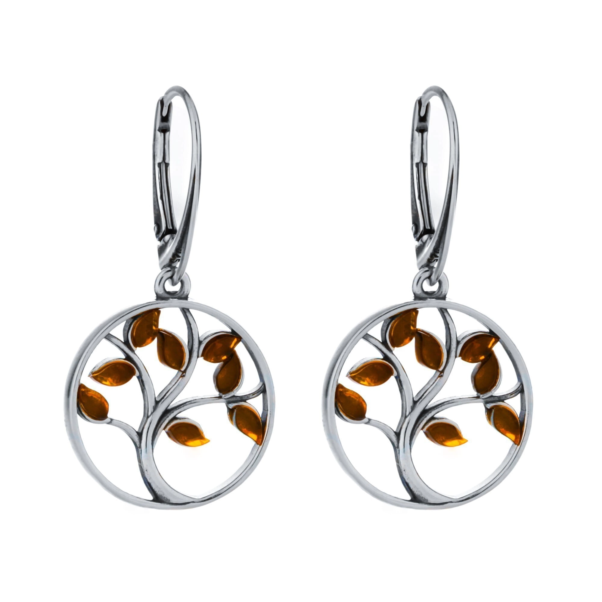 SREBRNE KOLCZYKI DRZEWKA Z BURSZTYNEM