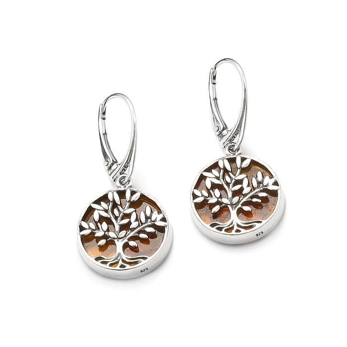 SREBRNE KOLCZYKI DRZEWKA Z BURSZTYNEM