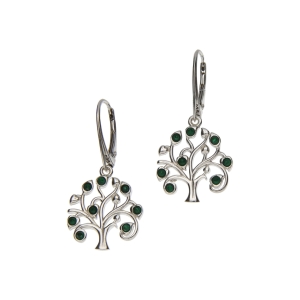 SREBRNE KOLCZYKI DRZEWKA Z BURSZTYNEM