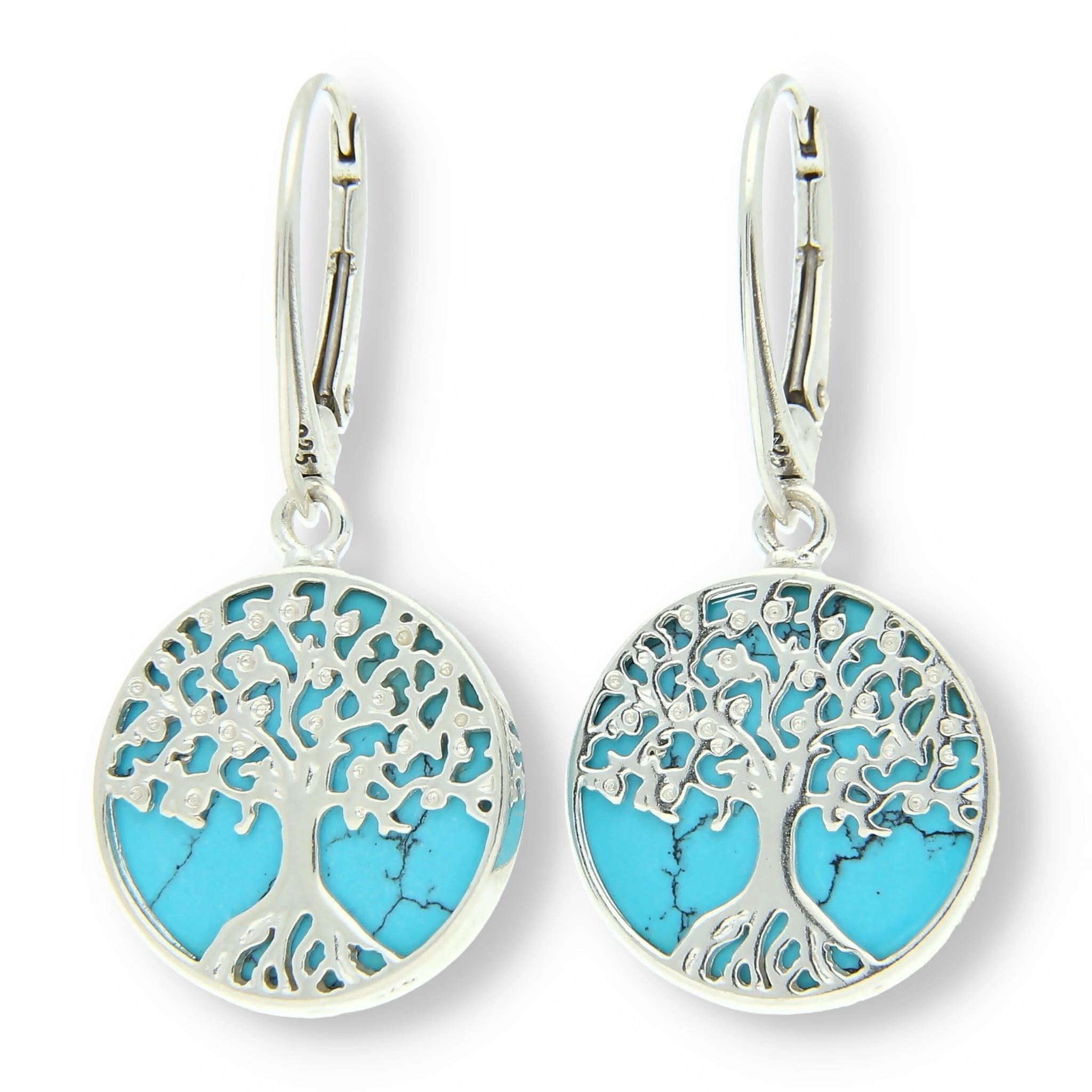 SREBRNE KOLCZYKI DRZEWKA Z TURKUSEM