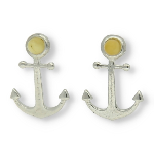 SREBRNE KOLCZYKI KOTWICZKI Z BURSZTYNEM