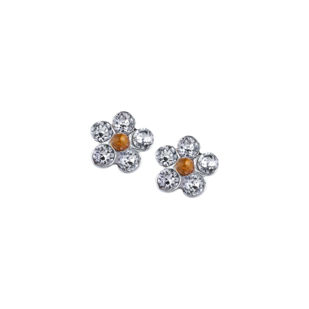 SREBRNE KOLCZYKI KWIATKI Z BURSZTYNEM