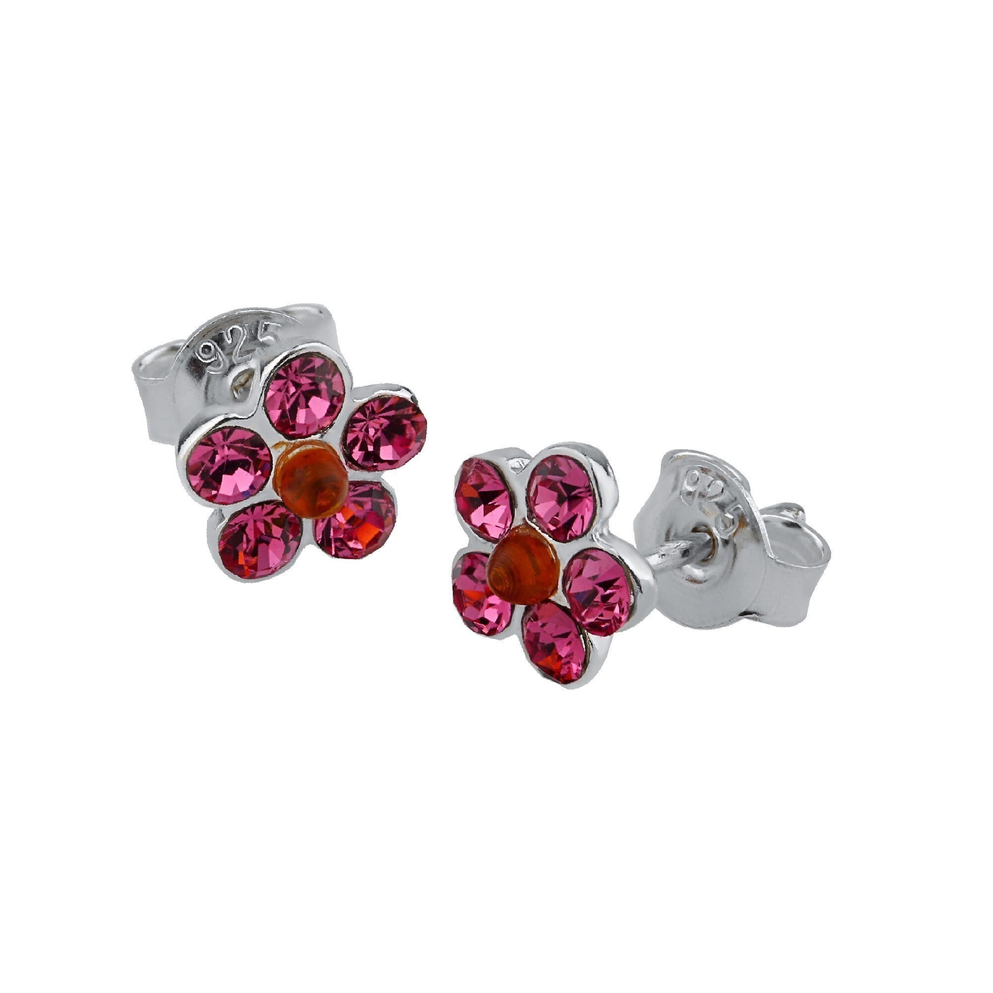 SREBRNE KOLCZYKI KWIATKI Z BURSZTYNEM