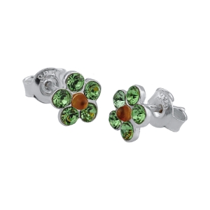 SREBRNE KOLCZYKI KWIATKI Z BURSZTYNEM