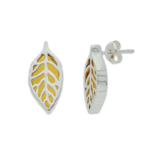 SREBRNE KOLCZYKI LISTKI Z BURSZTYNEM