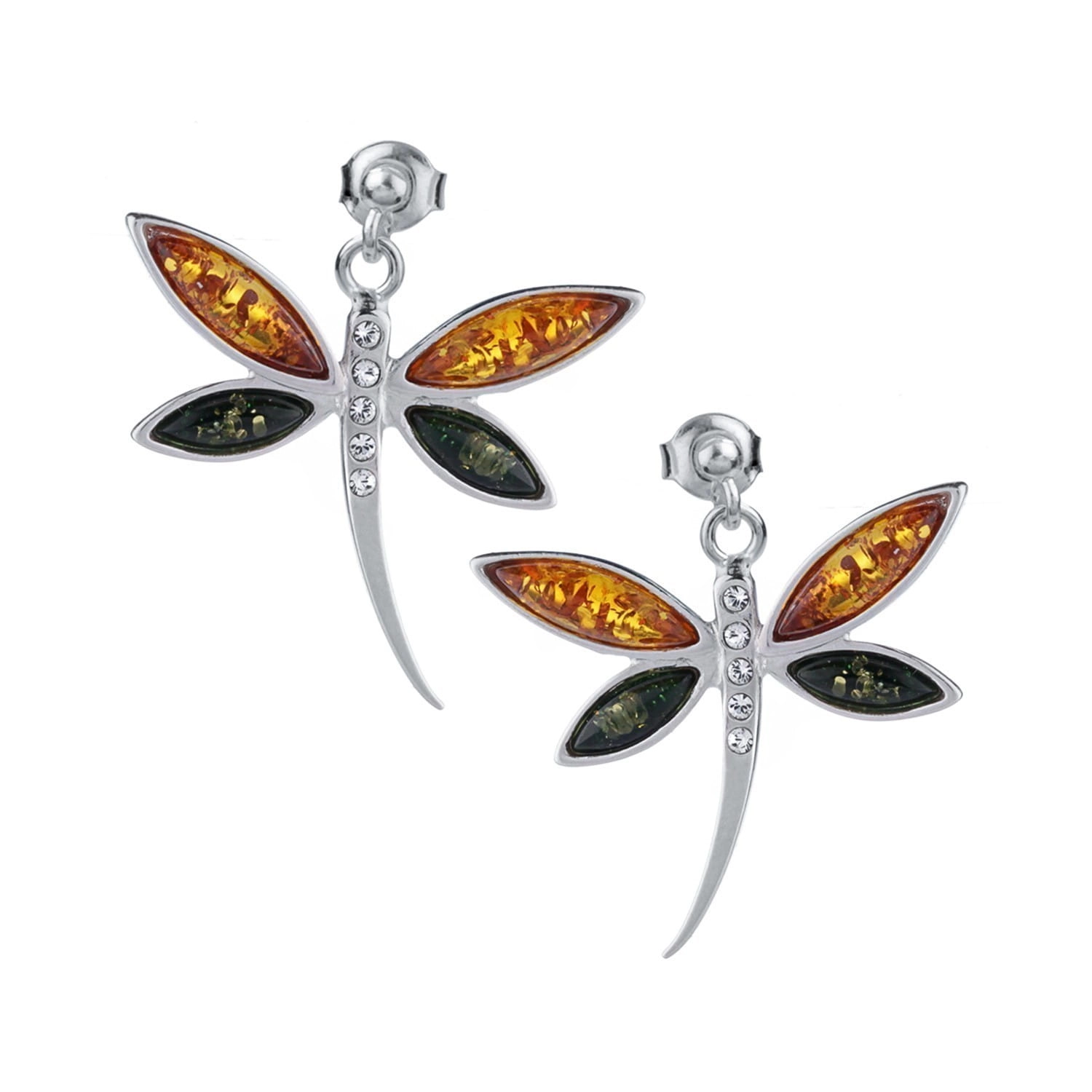 SREBRNE KOLCZYKI MOTYLE Z BURSZTYNEM