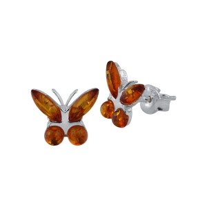SREBRNE KOLCZYKI MOTYLKI Z BURSZTYNEM