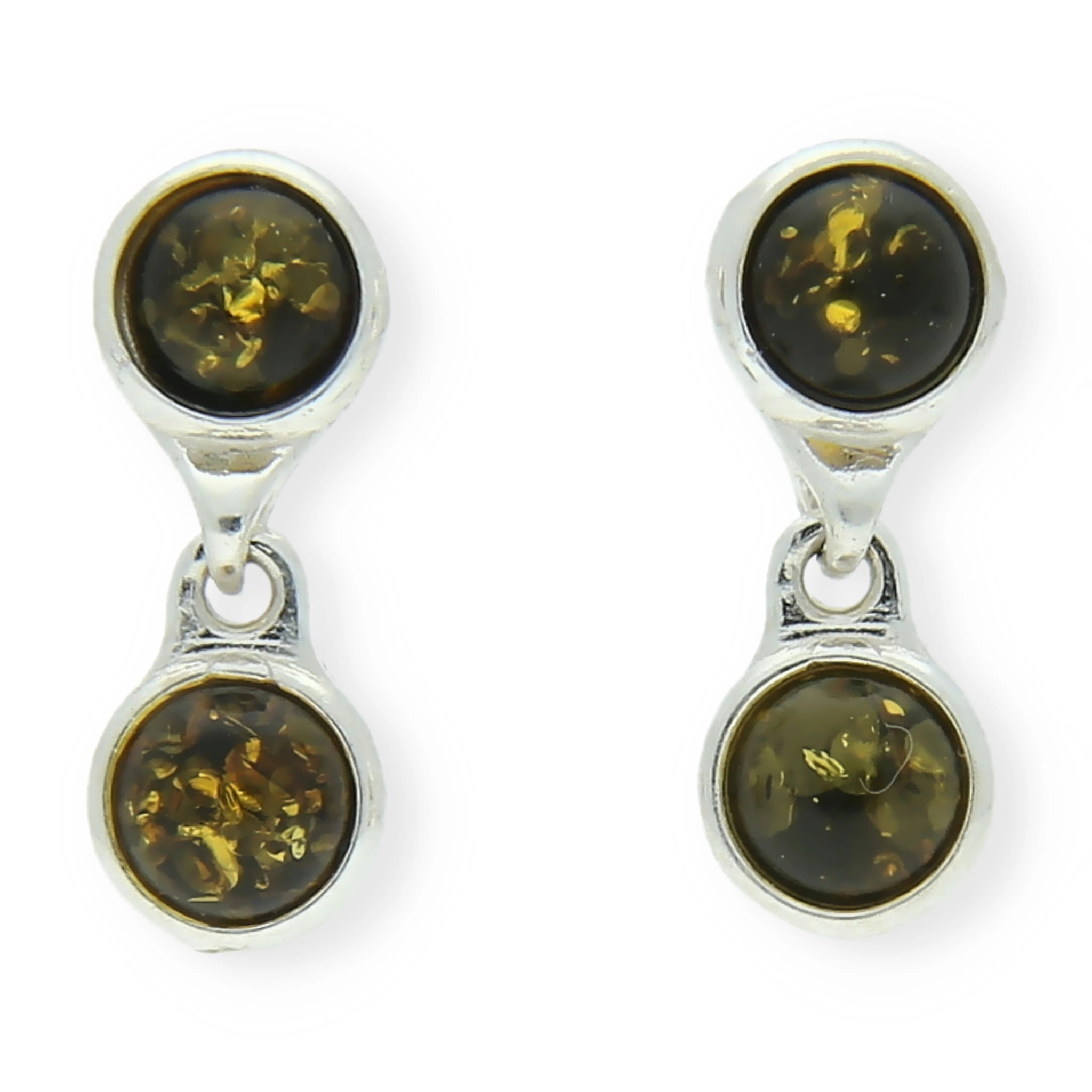 SREBRNE KOLCZYKI PODWÓJNE KOŁA Z BURSZTYNEM