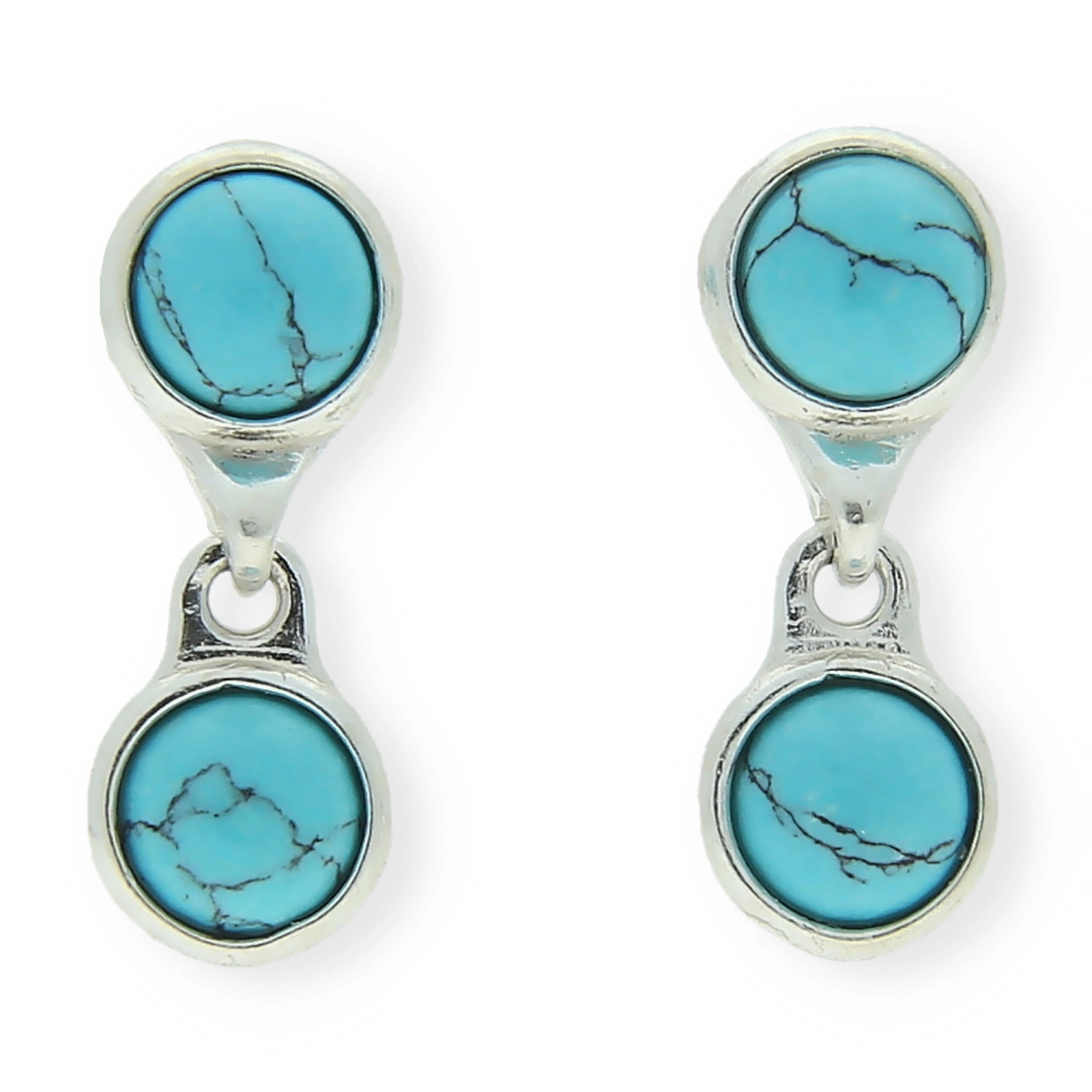 SREBRNE KOLCZYKI PODWÓJNE KOŁA Z TURKUSEM