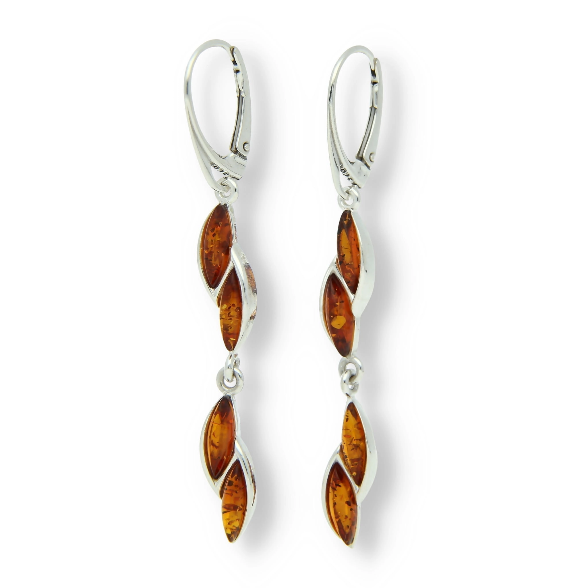 SREBRNE KOLCZYKI PODWÓJNE KROPELKI Z BURSZTYNEM