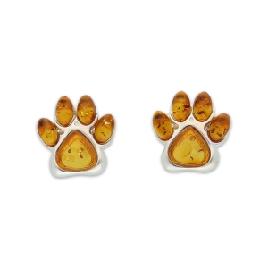 SREBRNE KOLCZYKI PSIE ŁAPKI Z BURSZTYNEM
