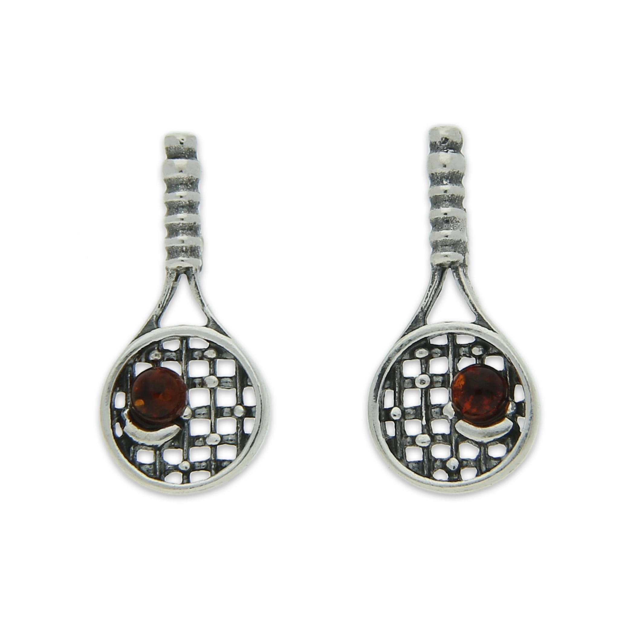 SREBRNE KOLCZYKI RAKIETY TENISOWE Z BURSZTYNEM
