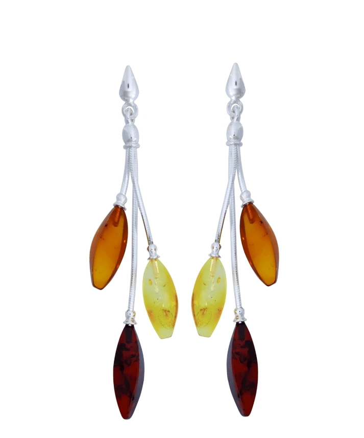 SREBRNE KOLCZYKI SPLYWAJACE KROPLE Z BURSZTYNEM