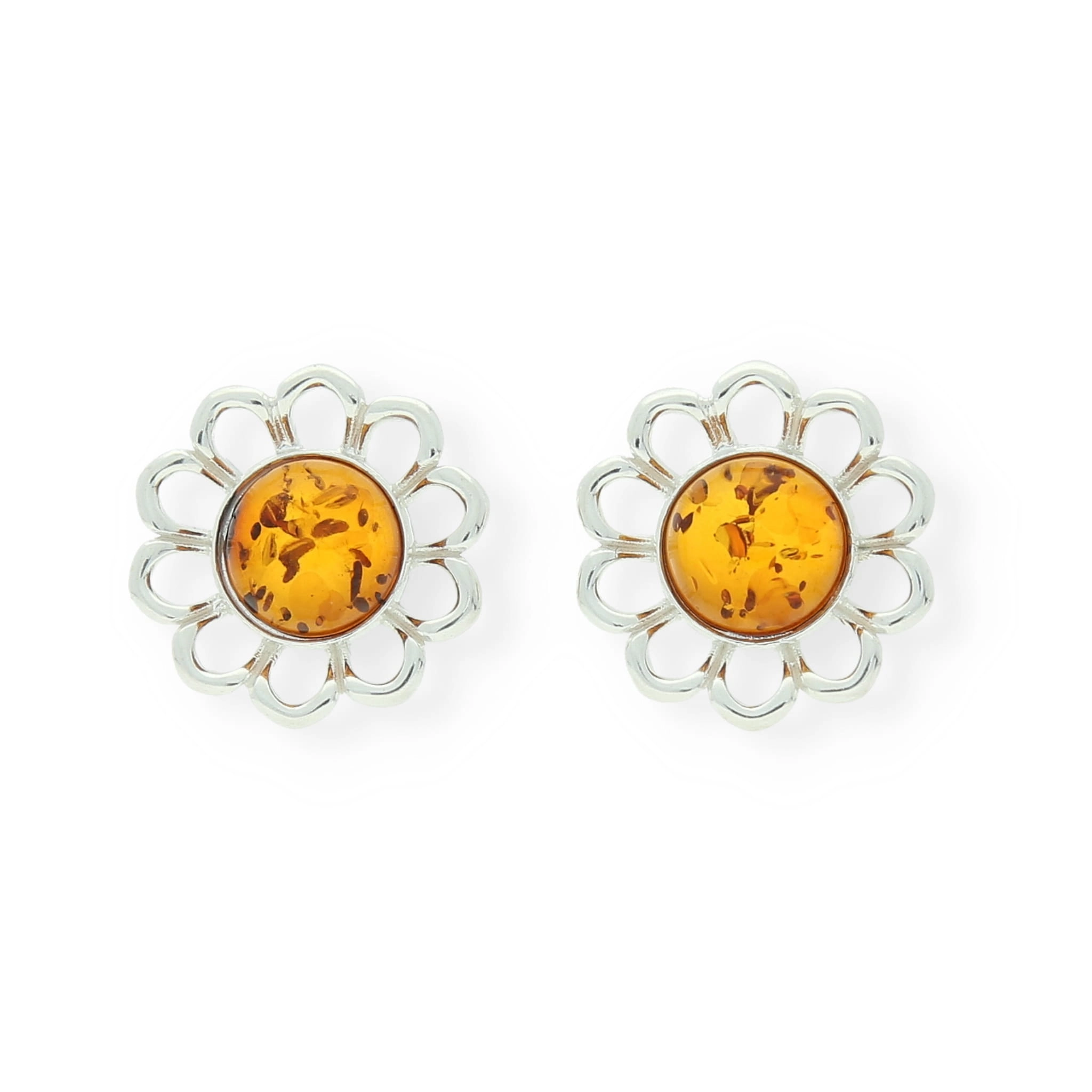 SREBRNE KOLCZYKI STOKROTKI Z BURSZTYNEM