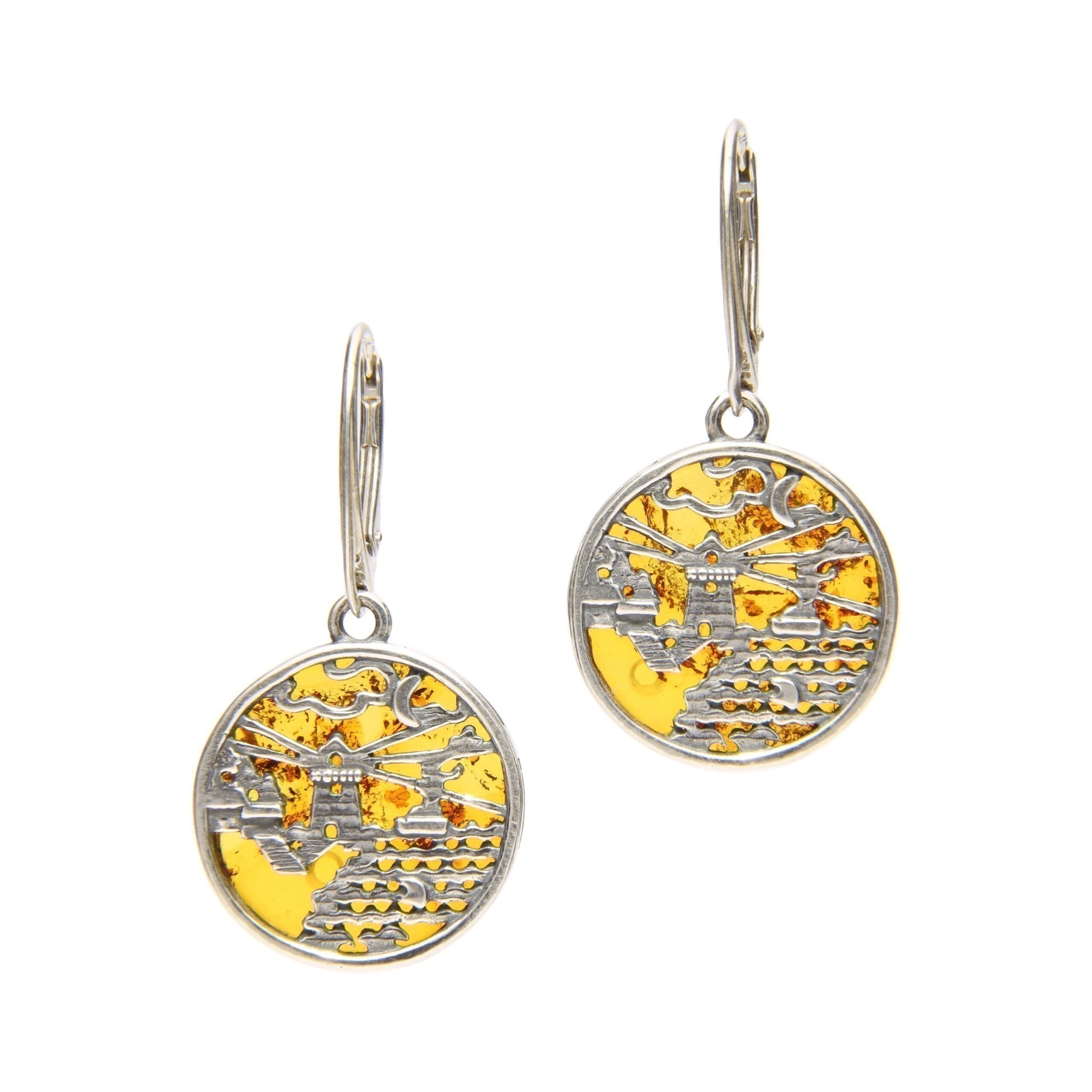SREBRNE KOLCZYKI WIDOKI Z BURSZTYNEM